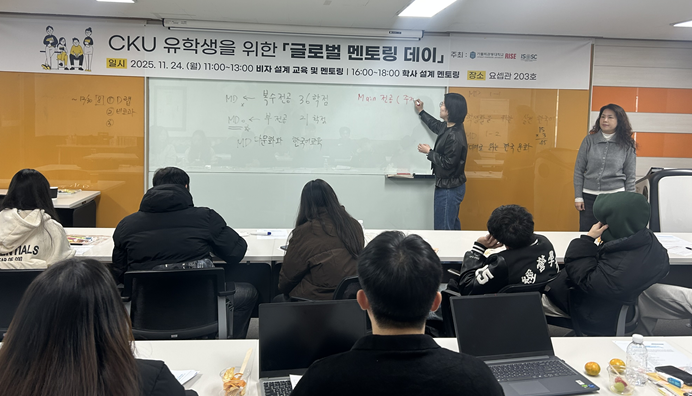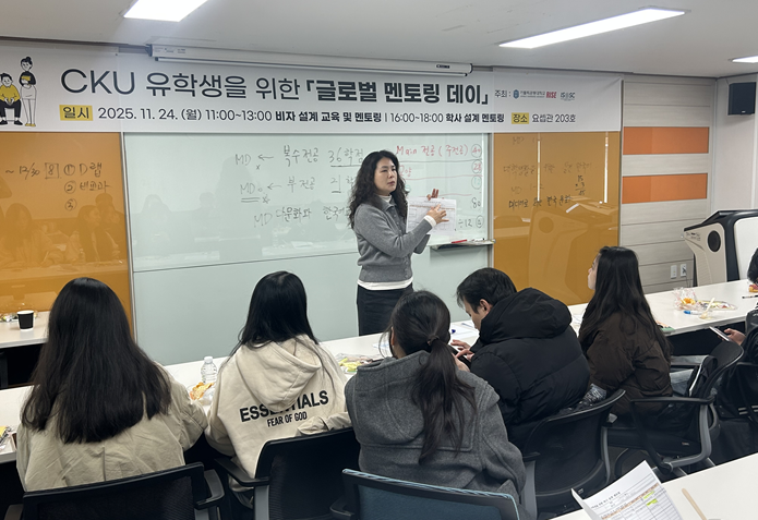 자율전공학부에서는 외국인 유학생을 대상으로 학사설계 멘토링 프로그램을 운영하여 한국 대학의 전공 구조와 이수 체계를 이해할 수 있도록 지원하고 있습니다.