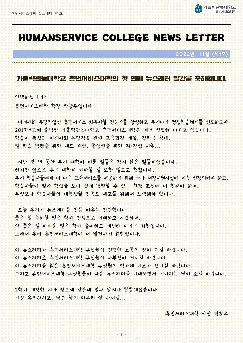 휴먼서비스대학 뉴스레터 제1호(2022.11.)