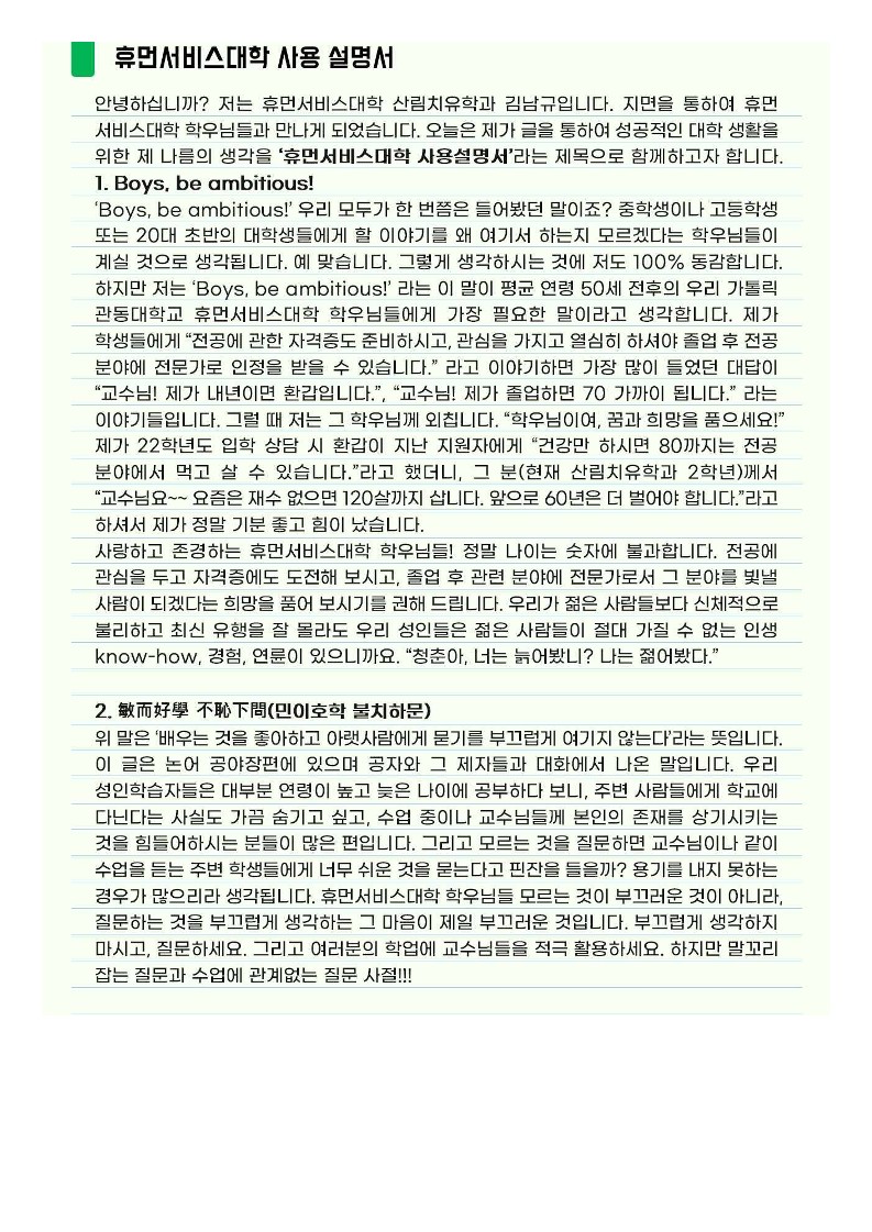 휴먼서비스대학 교학팀