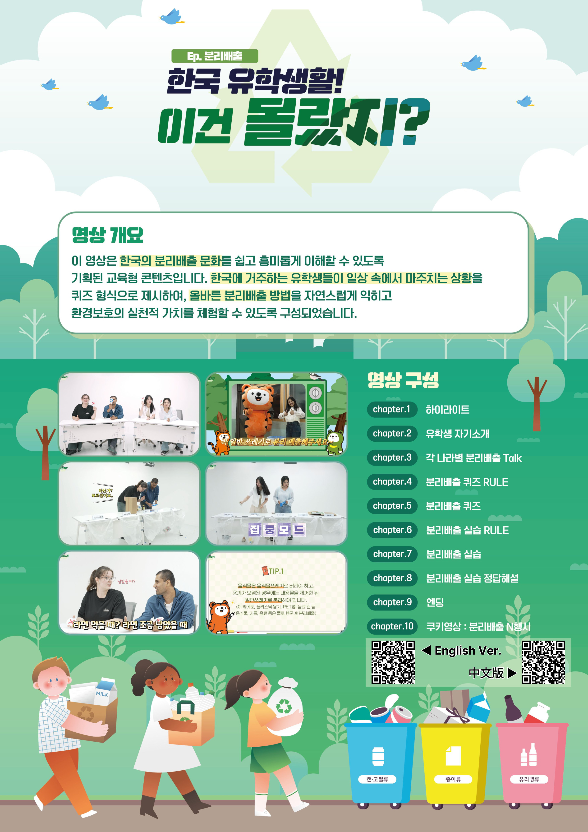 fnctId=bbs,fnctNo=1138 글번호 361170 유학생을 위한 쓰레기 분리배출 교육 영상 안내 수정일 2025.11.19 작성자 국제교류처 조회수 46 등록일 2025.11.19 첨부파일 첨부파일이(가) 없습니다.