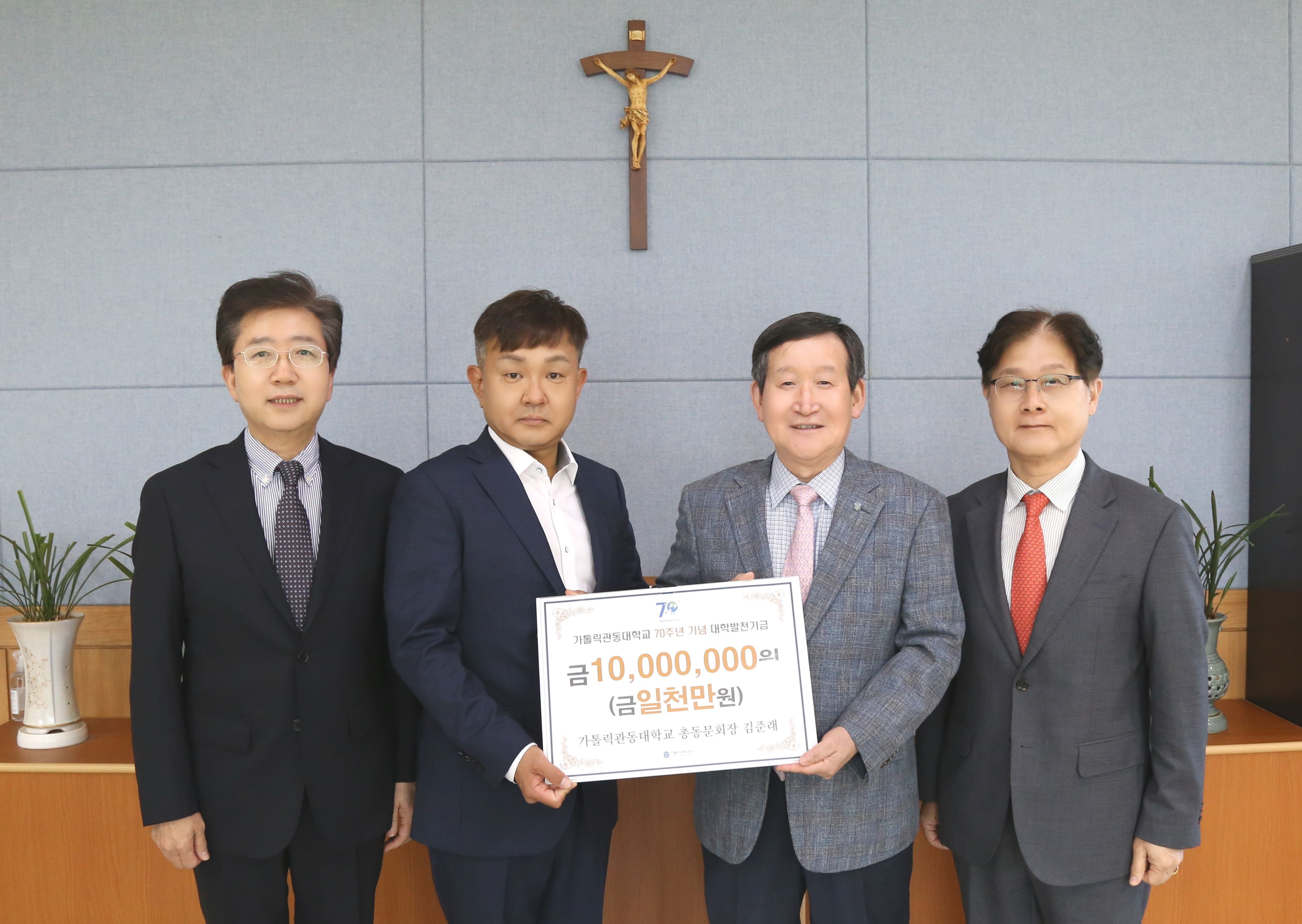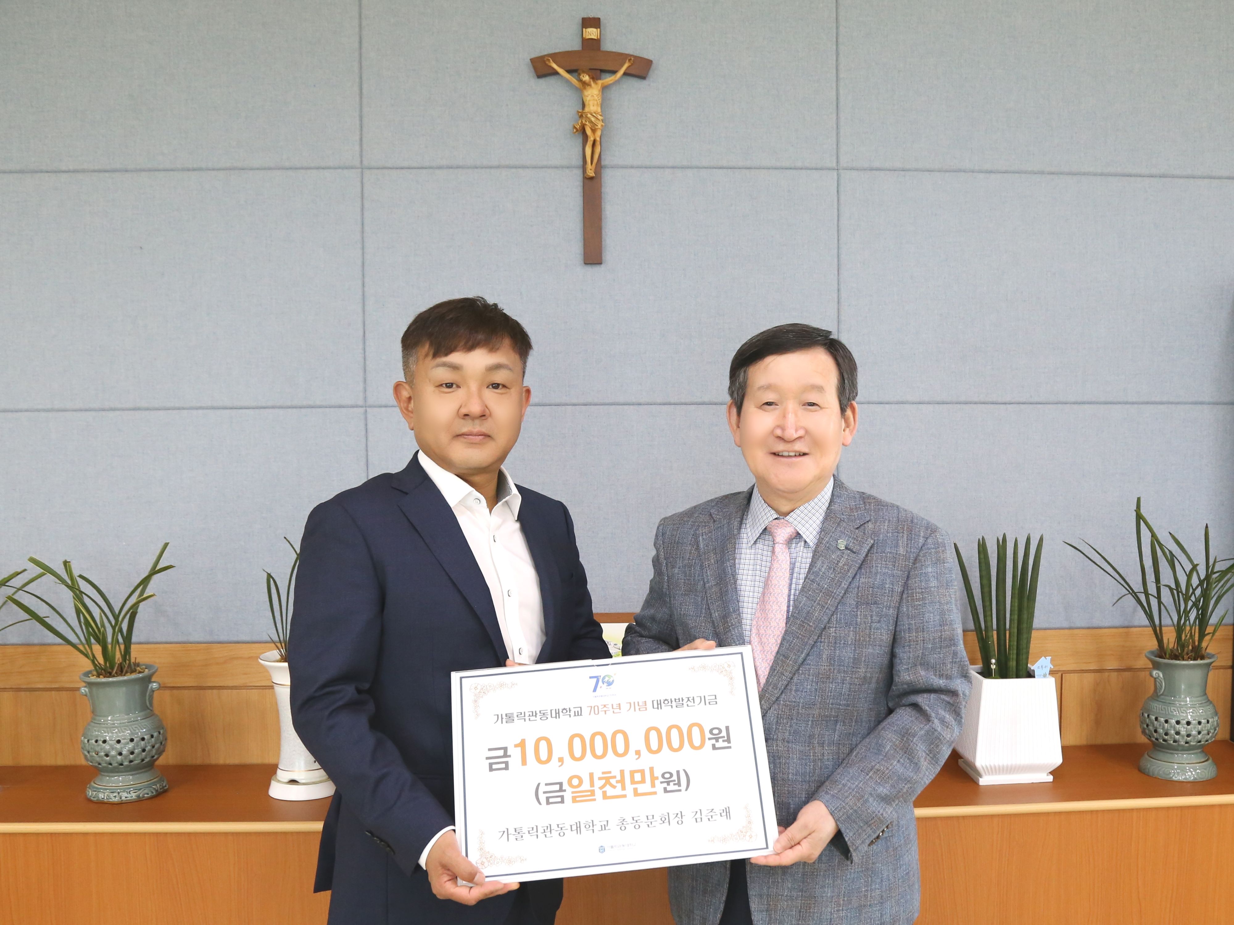 우리 대학은 올해 70주년을 기념해 김준래(법학과 91학번, 現코니스그룹 대표) 총동문회장이 발전기금 1천만 원을 기부했다.