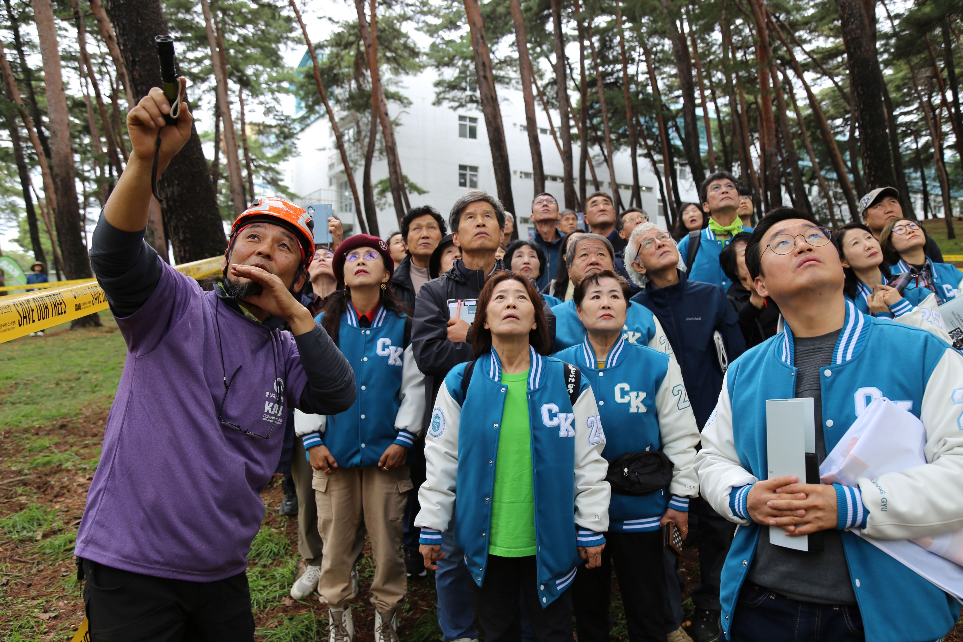 또한 스포츠레저학전공 재학생들도 트리클라이밍 경기 운영과 체험 프로그램에 참여하며, 스포츠 활동과 숲 속 안전기술을 결합한 현장 실습 수업을 병행했다. 학생들은 경기 안전관리, 로프 클라이밍 체험, 수목 구조 이해 등 실무 중심 교육을 통해 산림·스포츠 융합 전문성을 강화하는 기회를 가졌다.