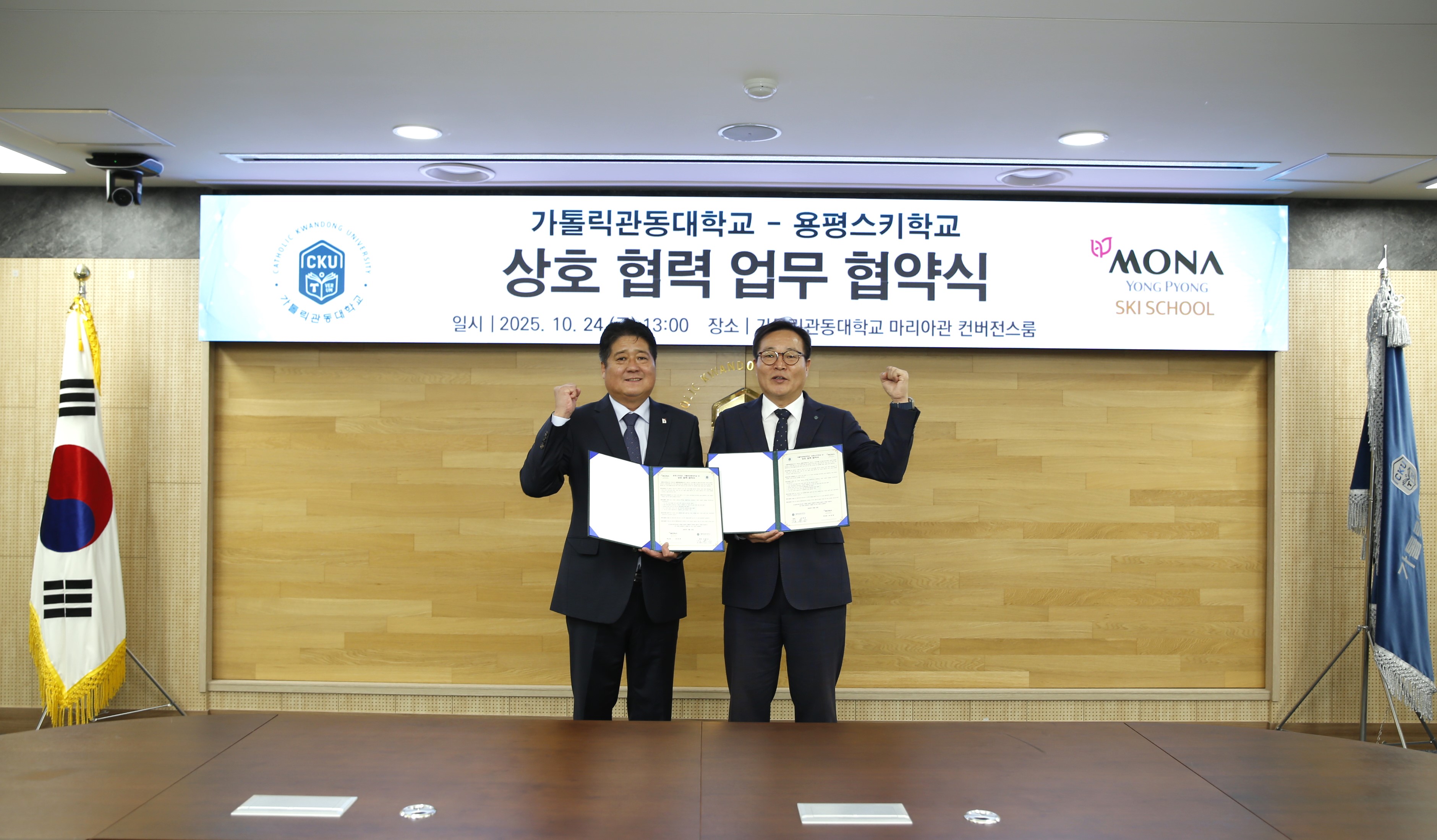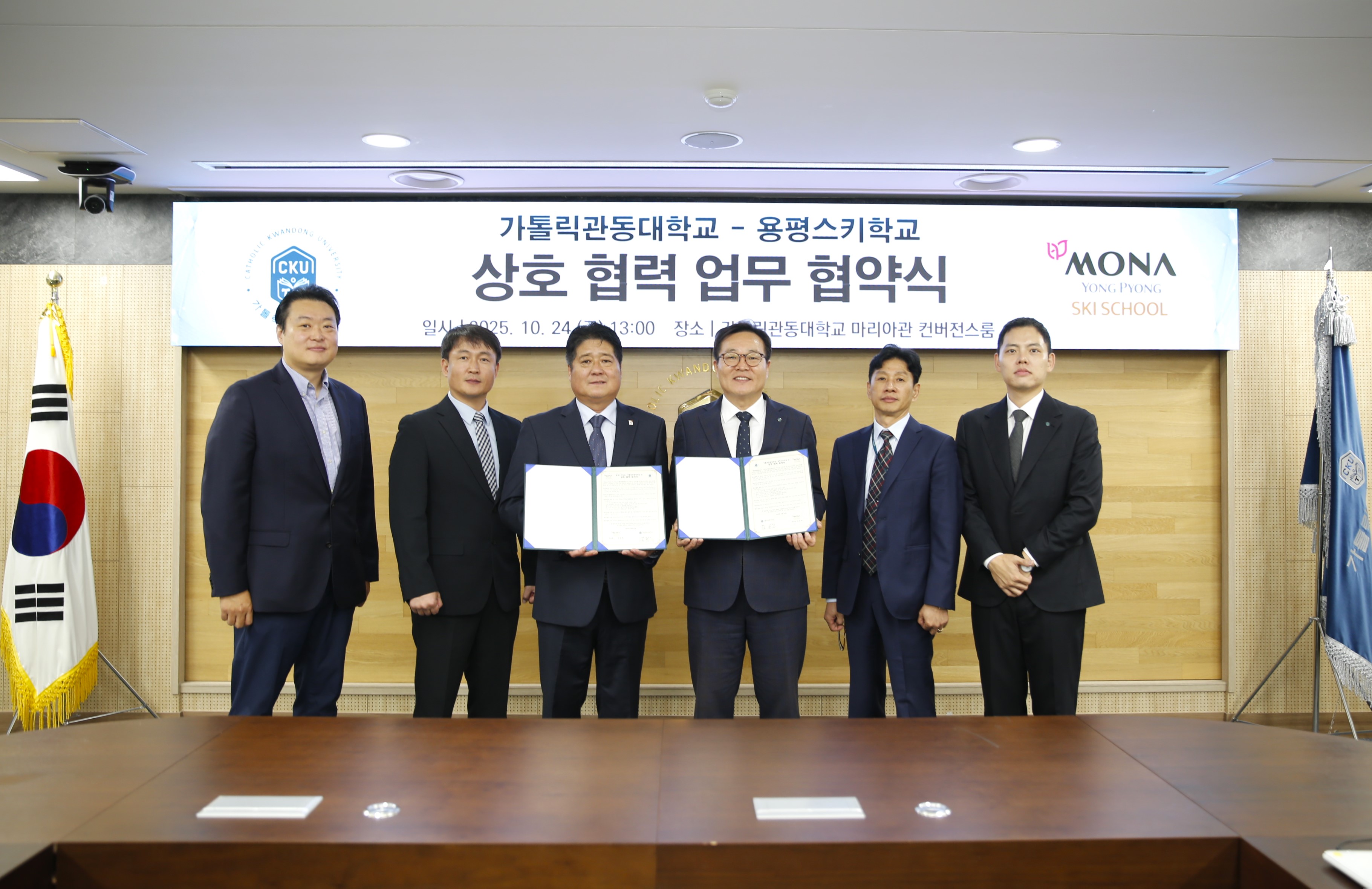 우리 대학 스포츠재활의학전공은 지난 10월 24일(목) 마리아관 컨버전스룸에서 모나 용평 스키학교와 업무협약(MOU)을 체결했다.