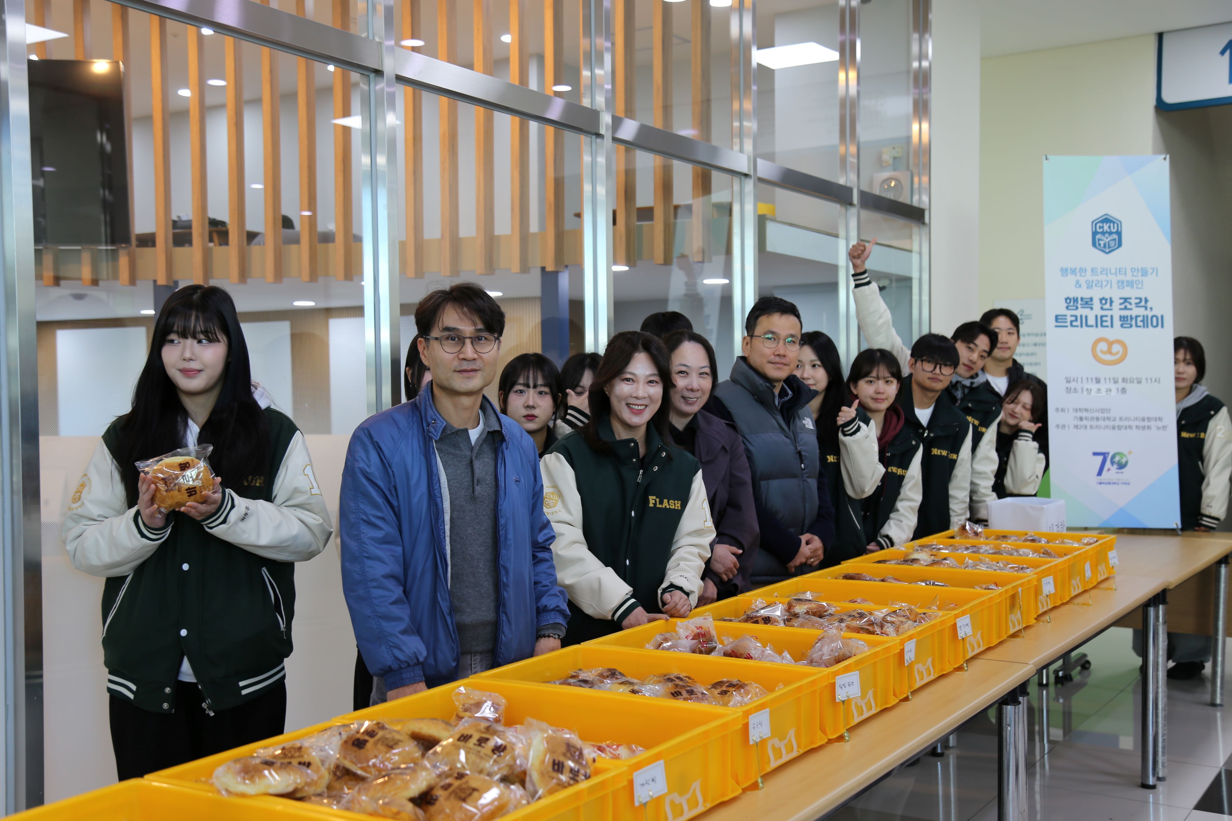 우리 대학 트리니티융합대학은 11일(오늘) 오전 11시, 본교 창조관 1층에서 ‘행복 한 조각, 트리니티 빵데이 이벤트’를 개최했다.