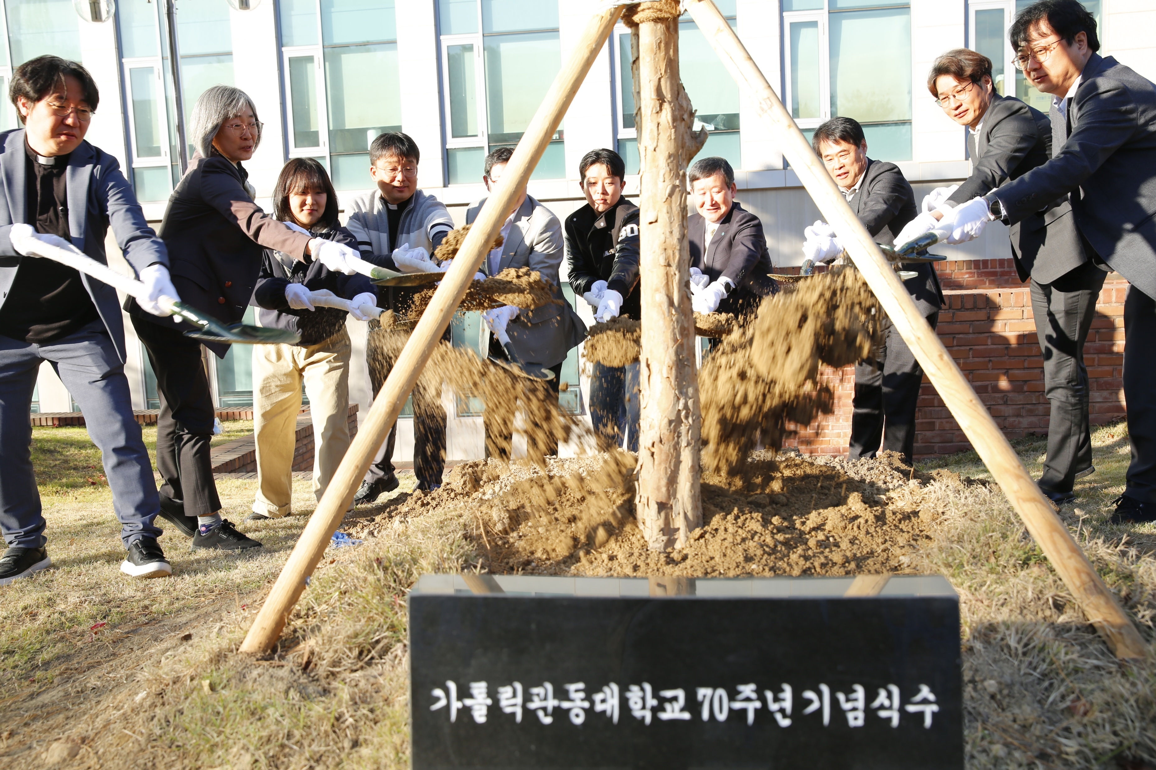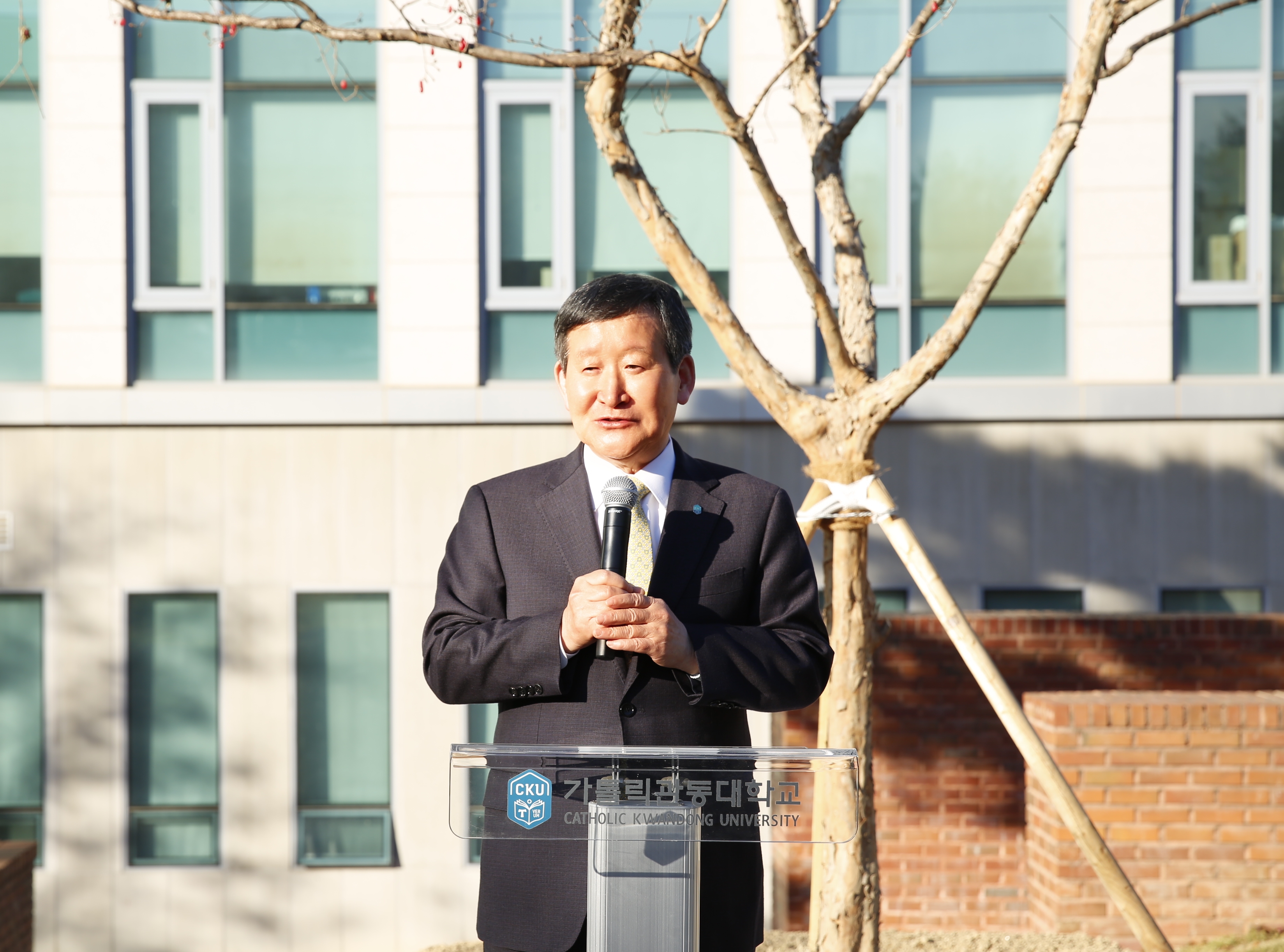 김용승 총장은 인사말에서 “산림청에서 보내주신 나무 한 그루, 한 그루에는 우리 대학의 지난 70년의 뿌리와 앞으로의 백년을 향한 희망이 담겨 있다”며 “가톨릭관동대학교가 지역과 함께 성장하고, 생명과 자연을 존중하는 교육의 가치를 이어가겠다”고 밝혔다.