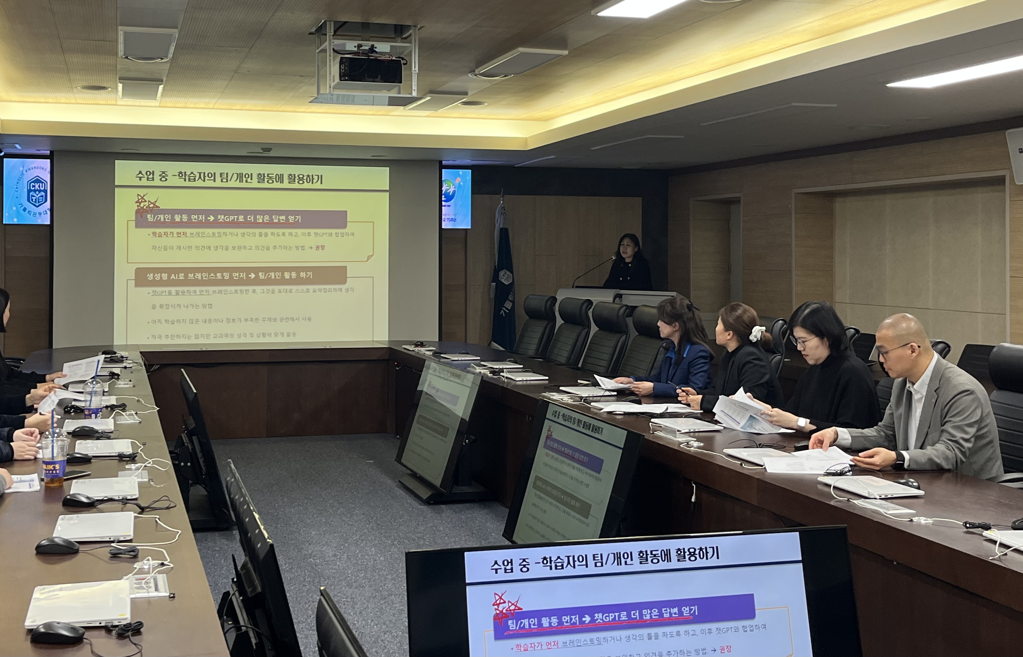 우리 대학 교수발전지원센터는 CKU 3주기 대학혁신지원사업의 '미래대응 전공 교육과정 및 수업 혁신 전략'의 핵심 과제인 'AI 융합 교육과정 운영체계 고도화' 사업 추진을 위해, 지난 11월 18일부터 12월 3일까지 '2025학년도 AI 융합 수업 선도교수단 육성을 위한 집중 워크숍'을 총 3회에 걸쳐 개최했다.