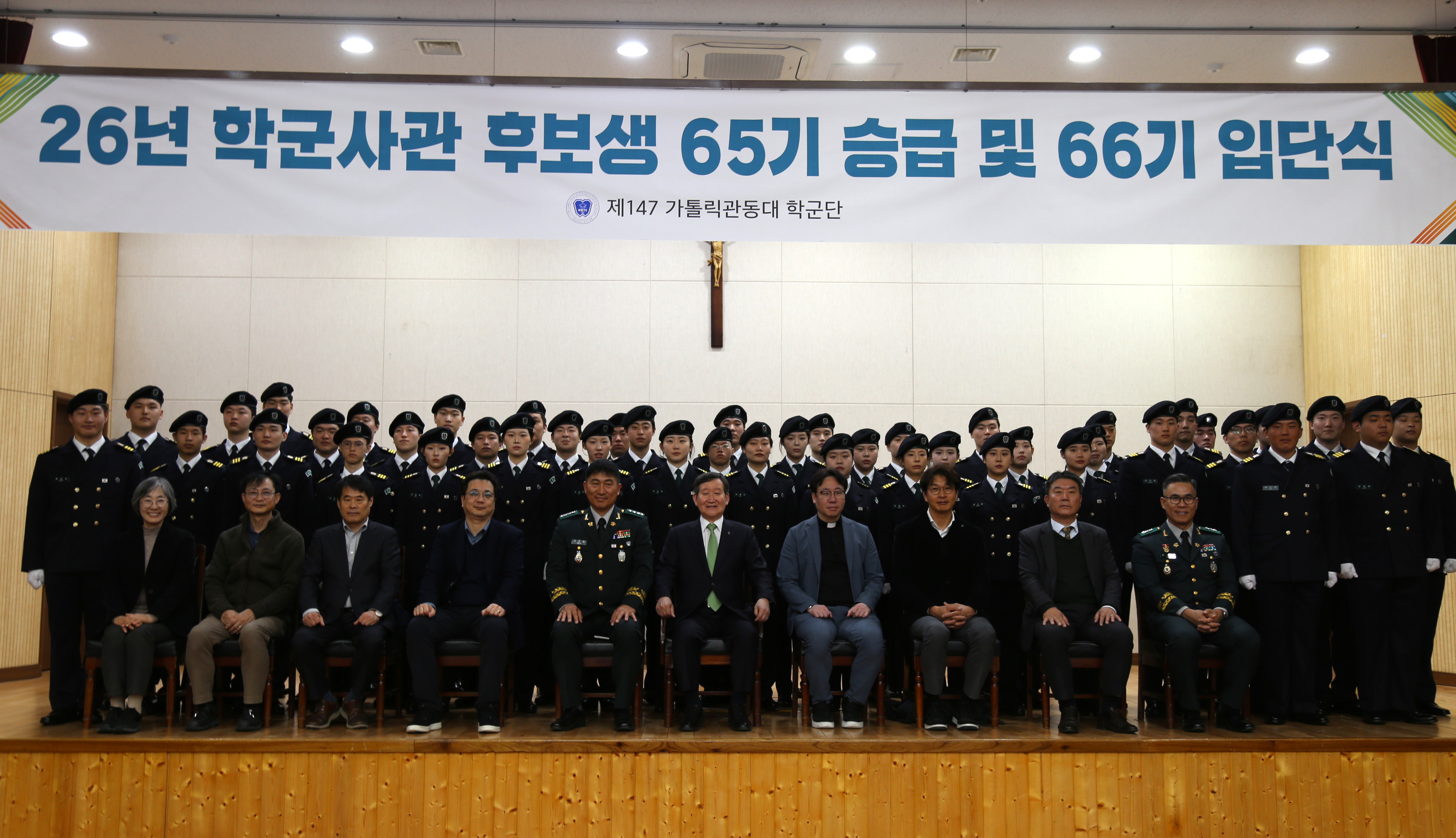 우리 대학 제147학생군사교육단이 지난 12일(목) 오후 2시, 본교 창조관 대강당에서 ‘2026년 학군단 65기 승급 및 66기 입단식’을 성황리에 개최했다.