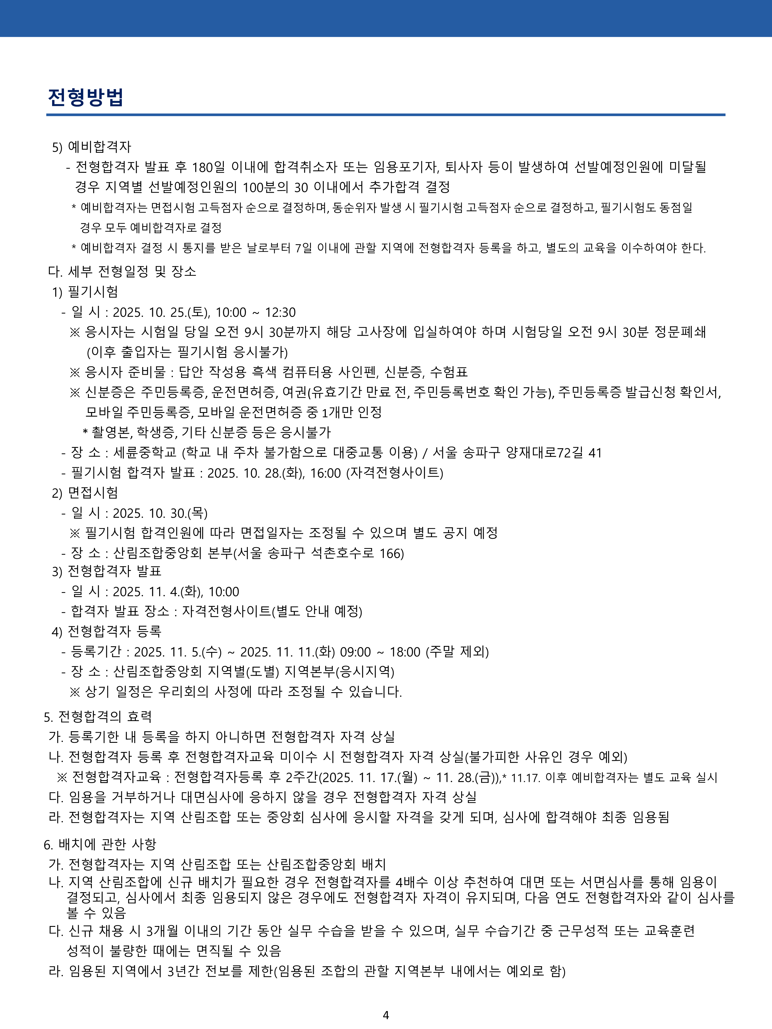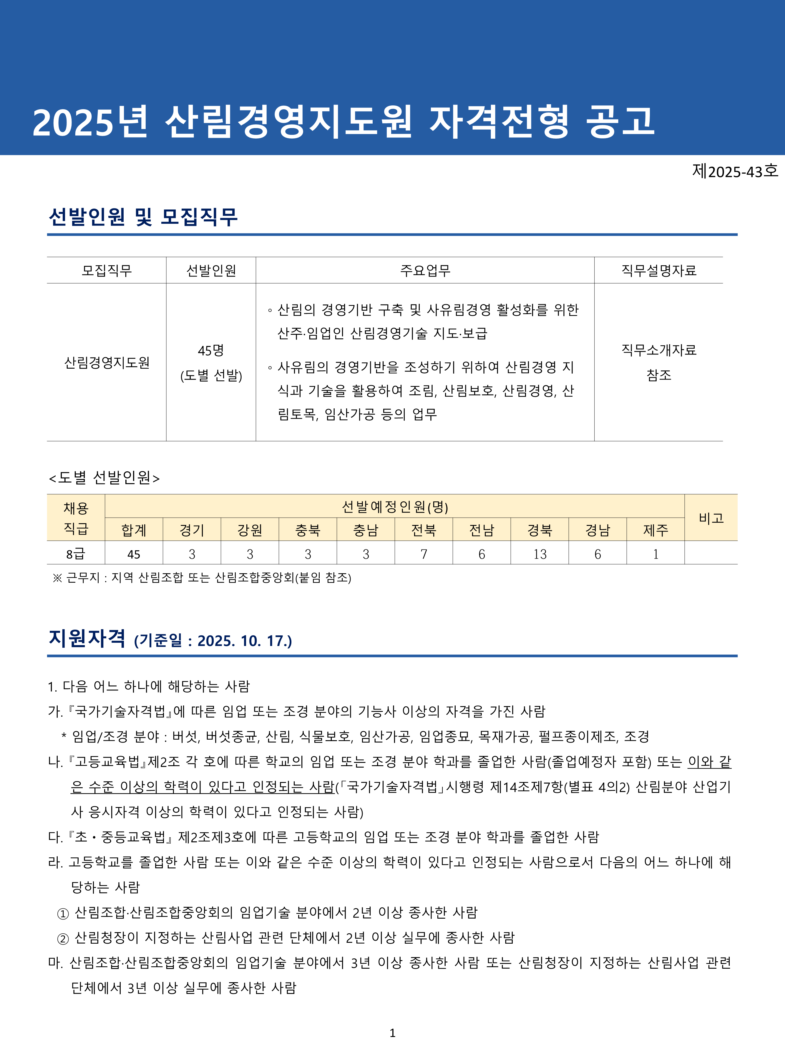 [산림조합중앙회] 2025년 산림경영지도원 자격전형 (~10/17 16시)