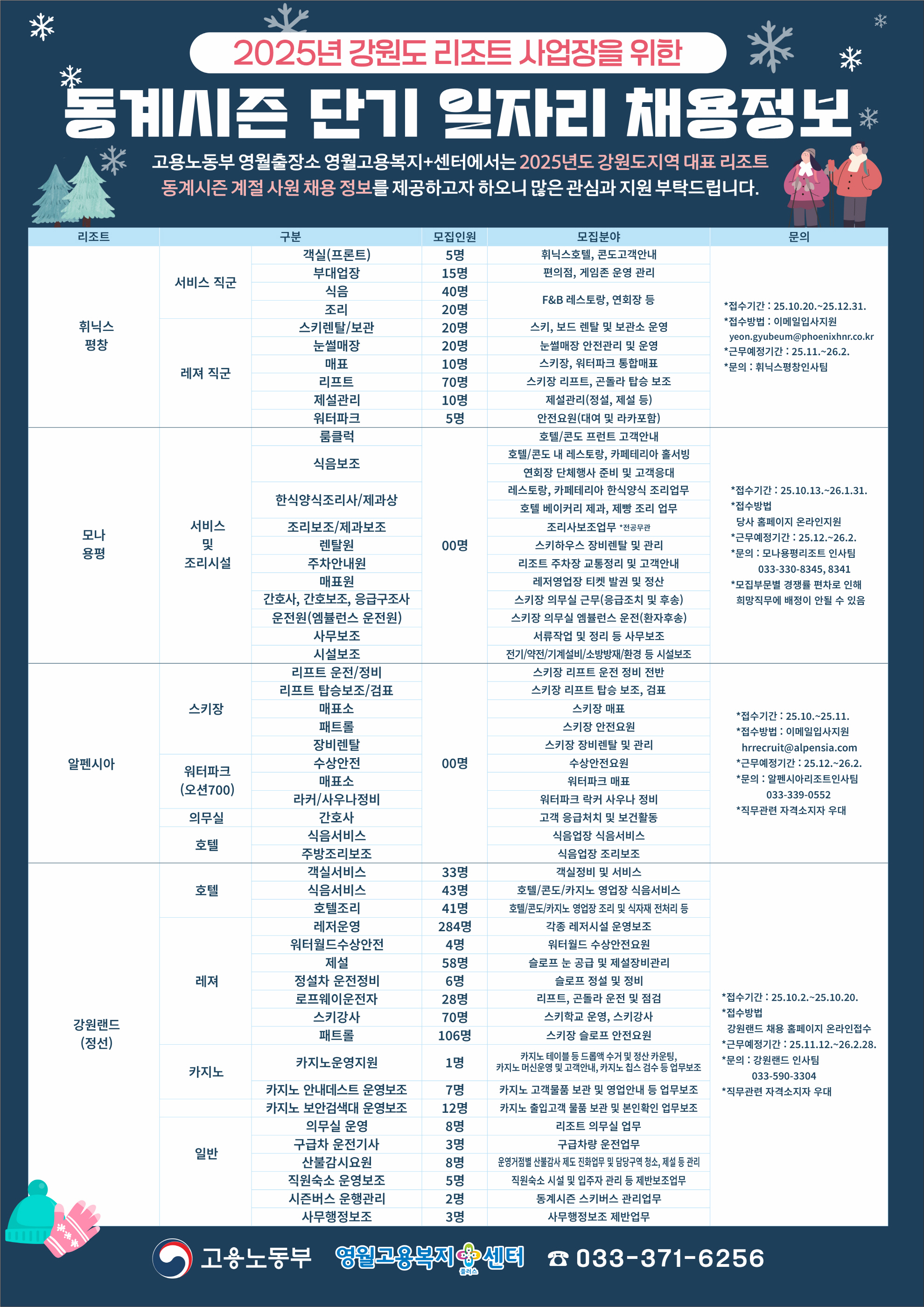 2025년 강원도 리조트 사업장을 위한 동계시즌 단기 일자리 채용 공고