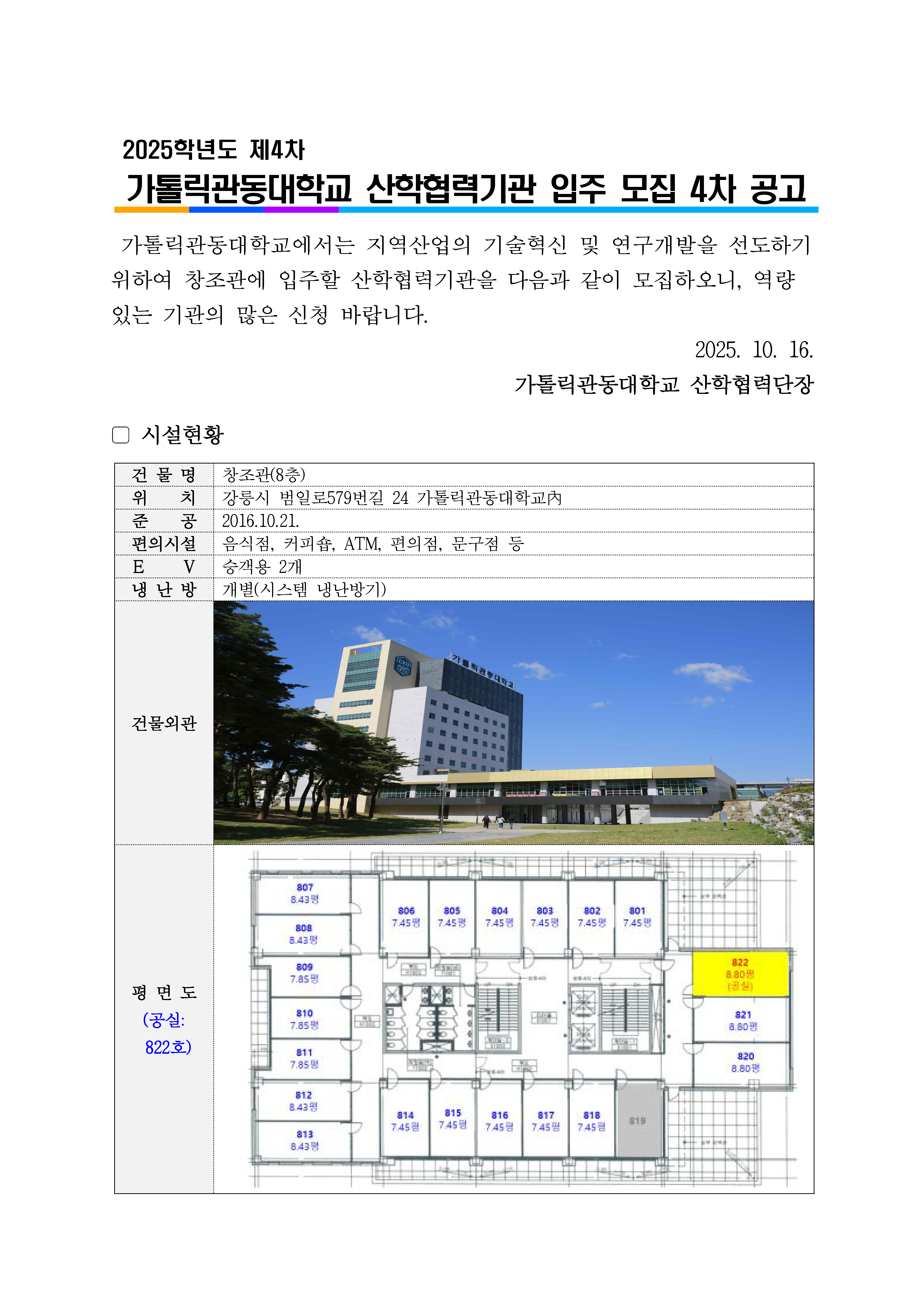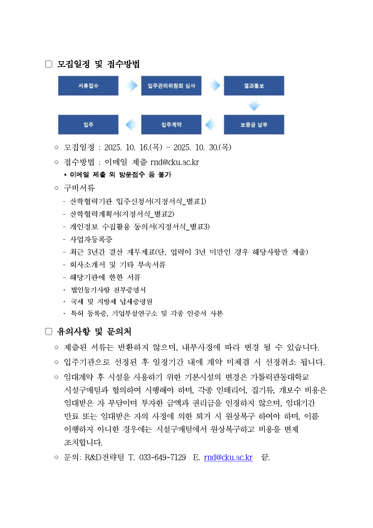 [산학협력단] 2025학년도 제3차 산학협력기관 입주모집 재공고(4차)