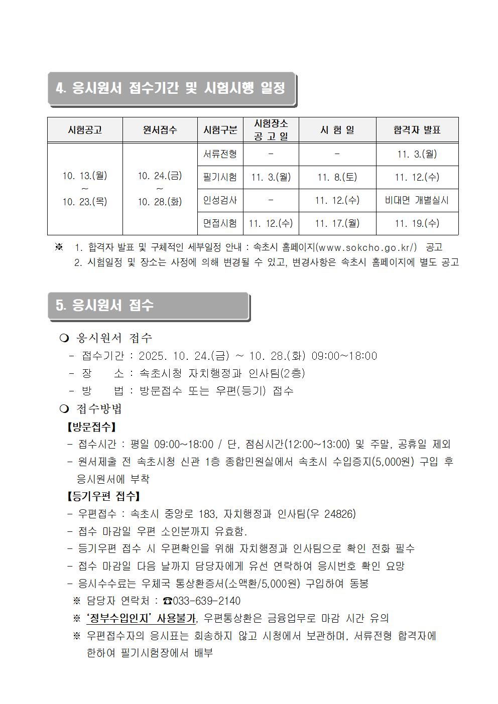 14646 2025년 제2회 속초시 지방공무원 경력경쟁 임용시험 공고 새글 대기 취업지원팀 2025.10.17 55 2