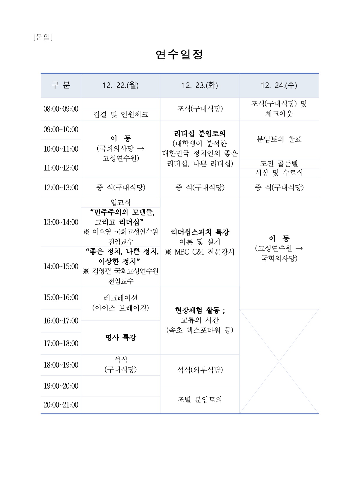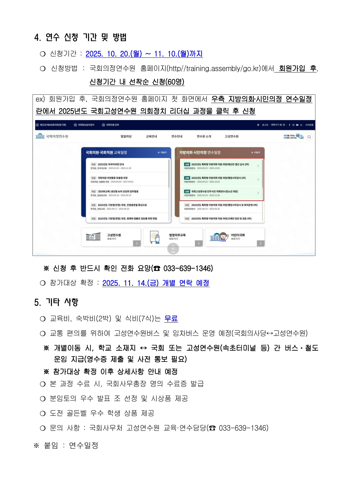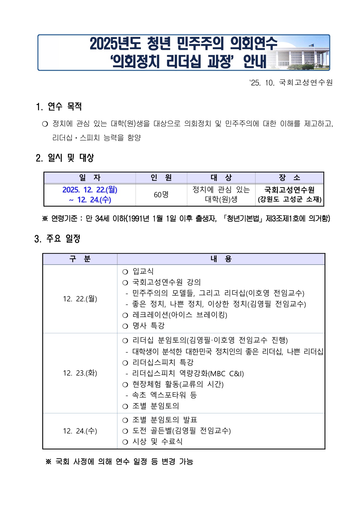 [교육부]「2025년도 국회고성연수원 의회정치 리더십 과정」안내