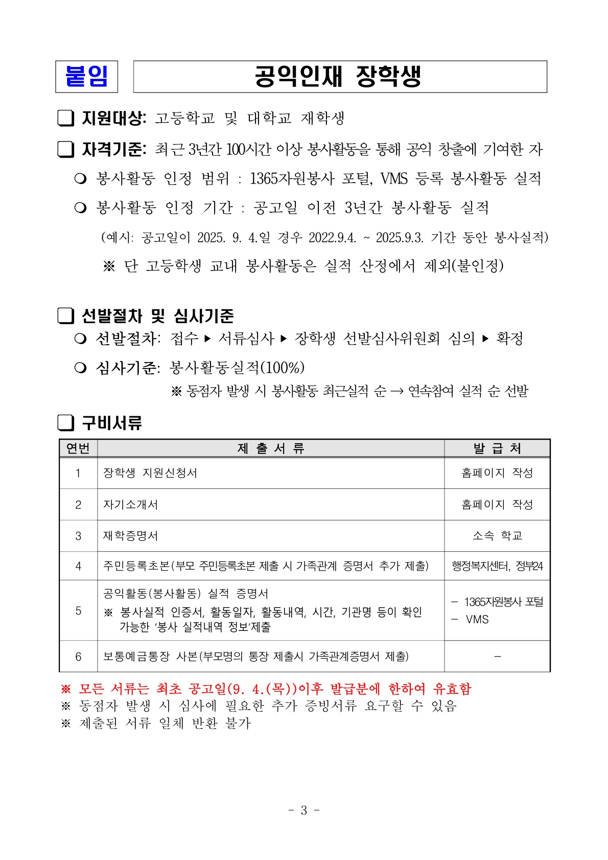 14687 [(재)인천인재평생교육진흥원] 2025년도 공익인재 장학생 선발 재공고(기간 연장) 안내 새글 대기 학생장학복지팀 2025.10.23 37 0