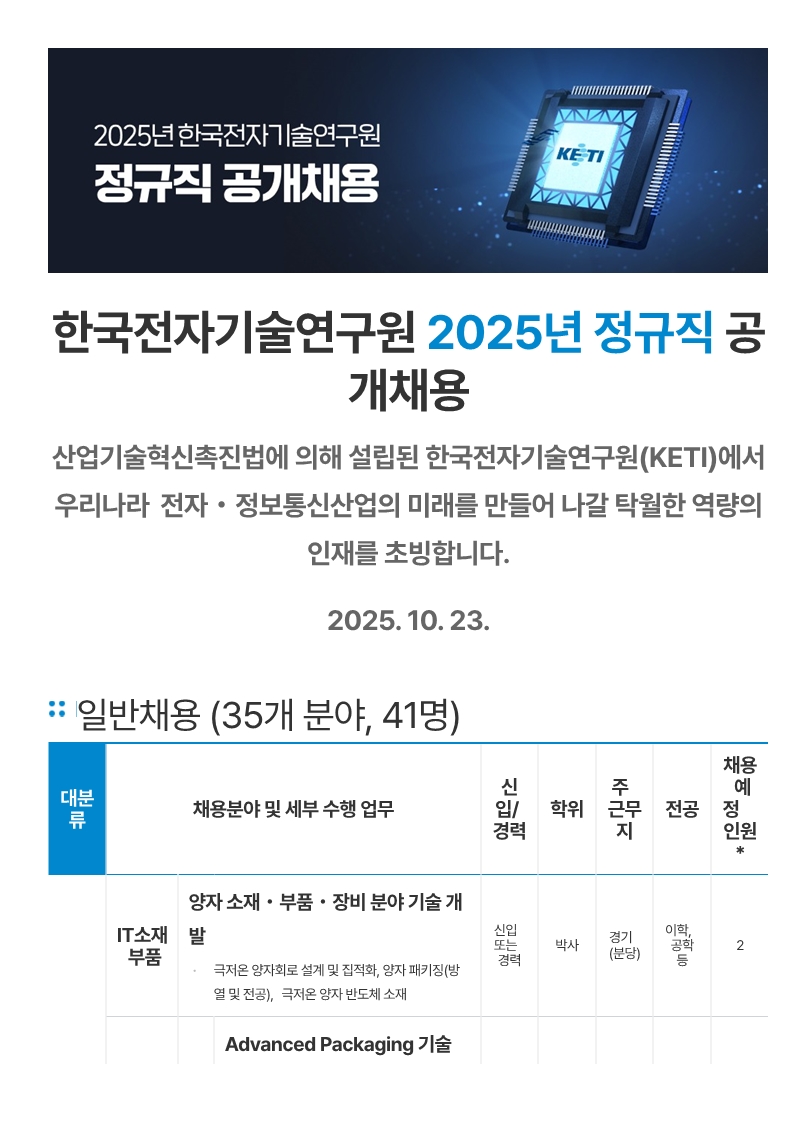 [한국전자기술연구원] 2025년 정규직 공개채용