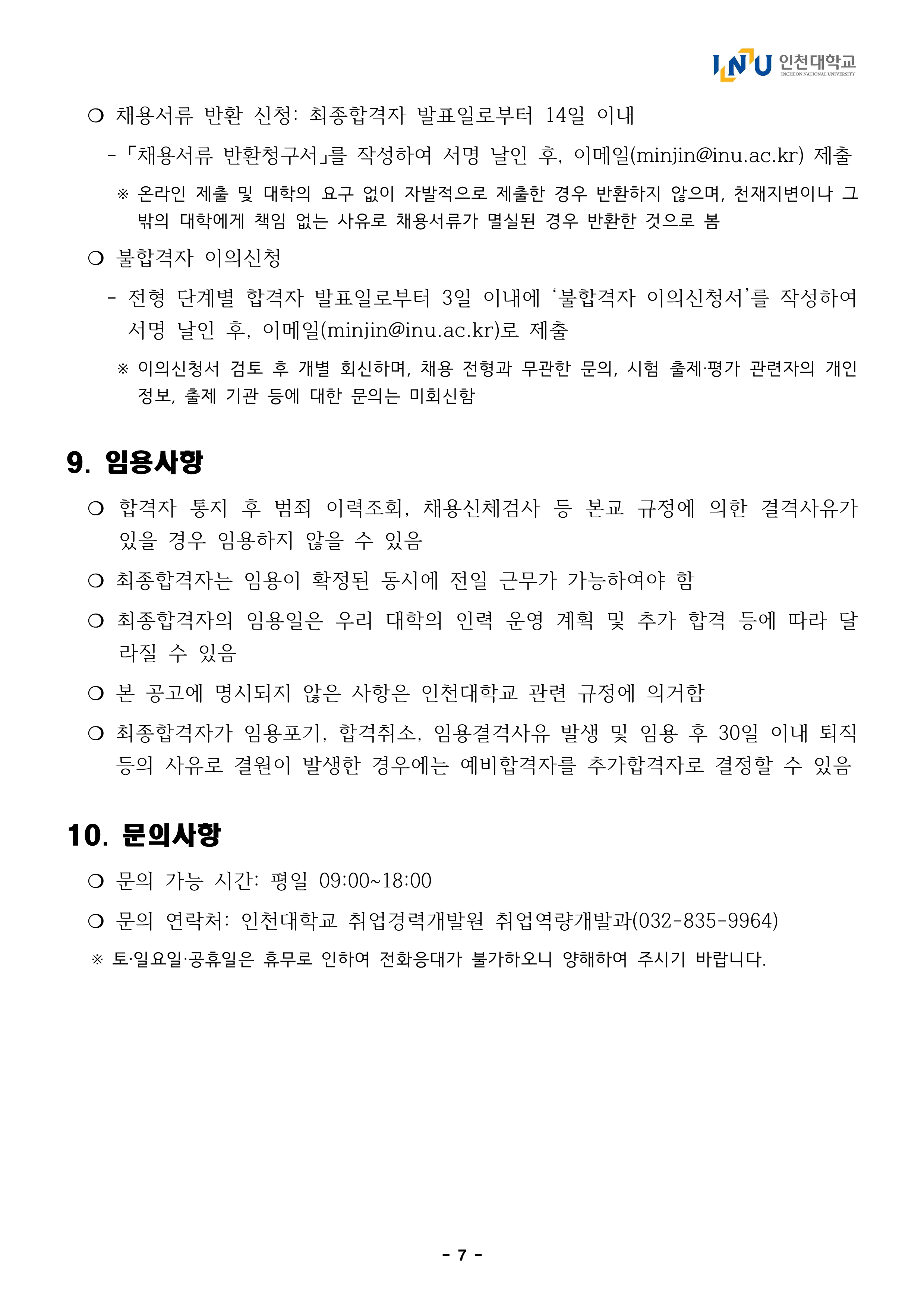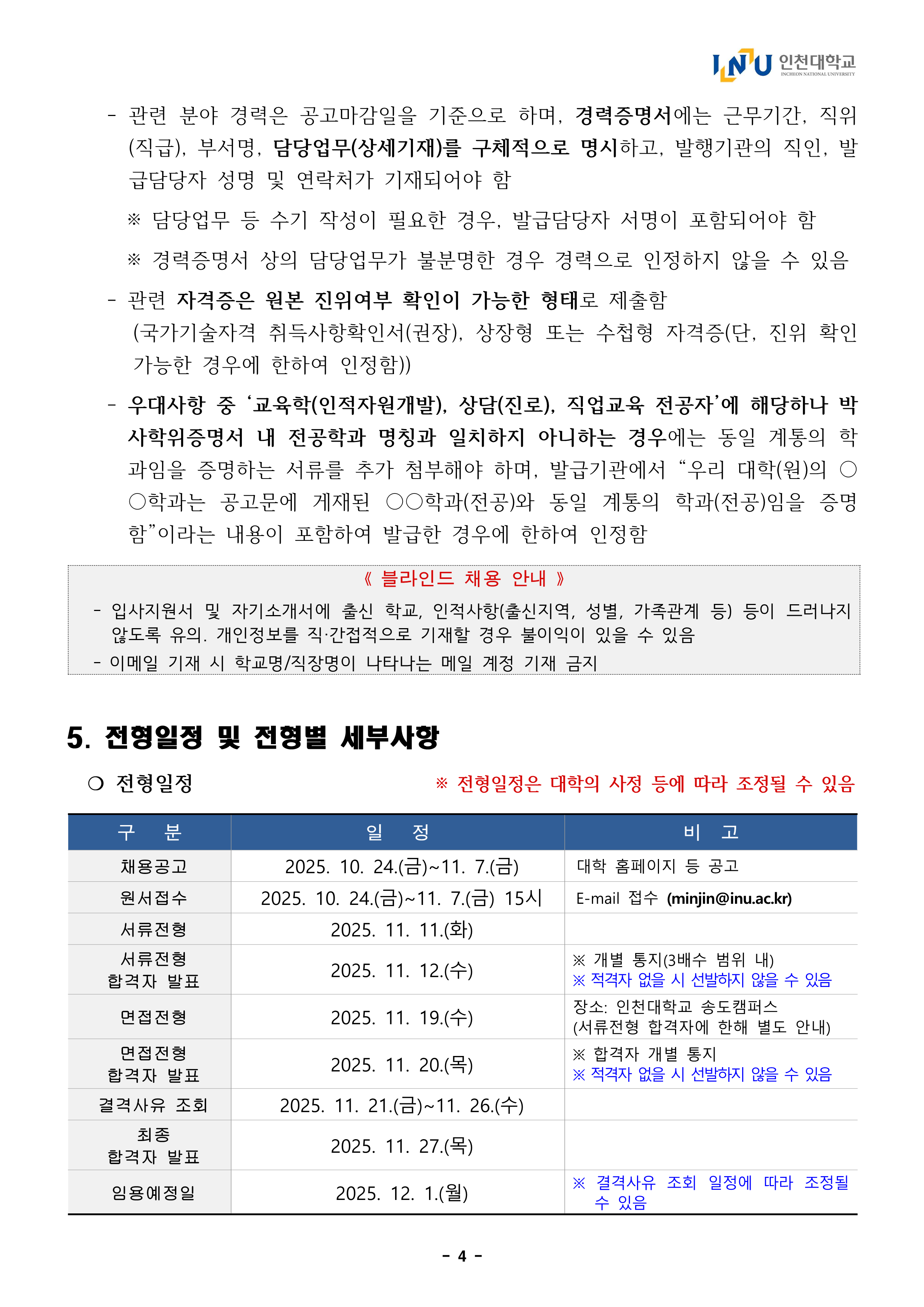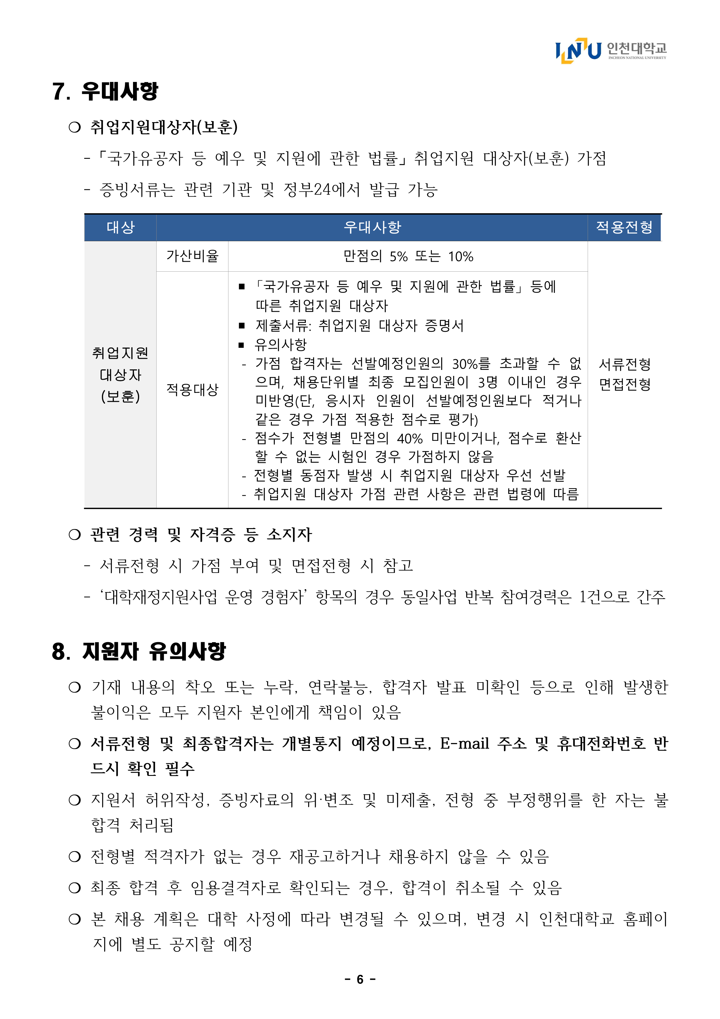 2025년도 인천대학교 학생취업처 취업경력개발원 전임연구원 채용 공고