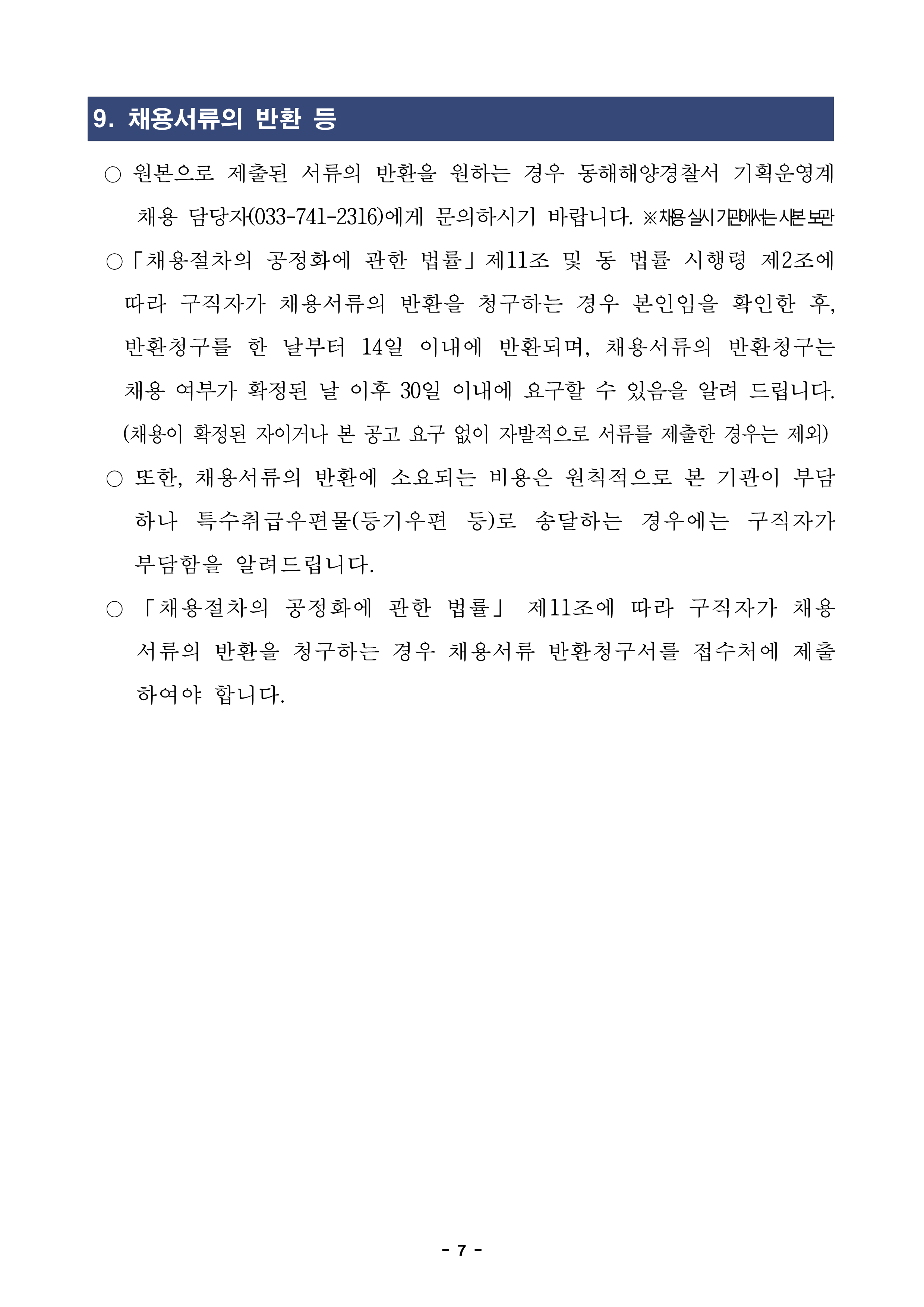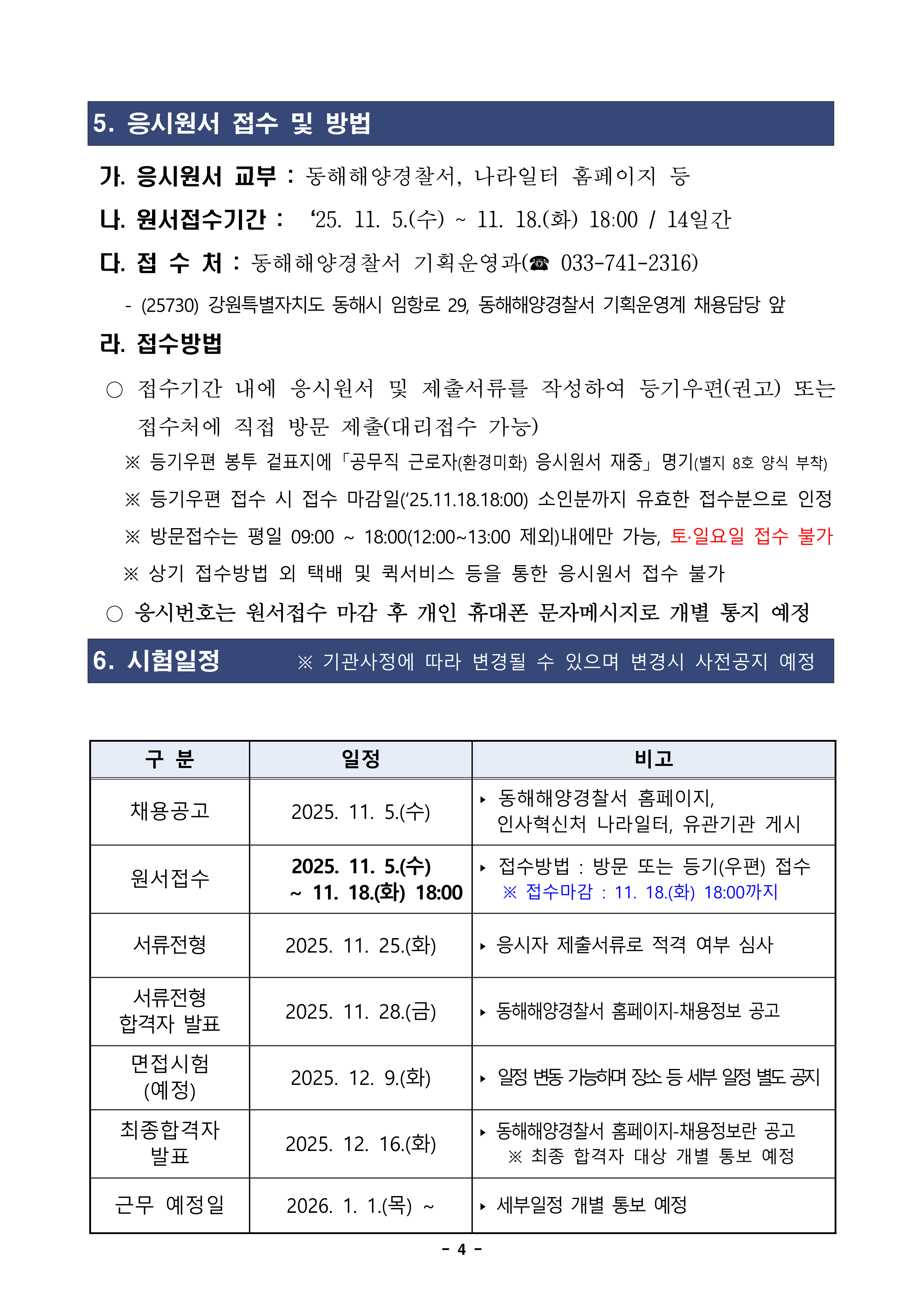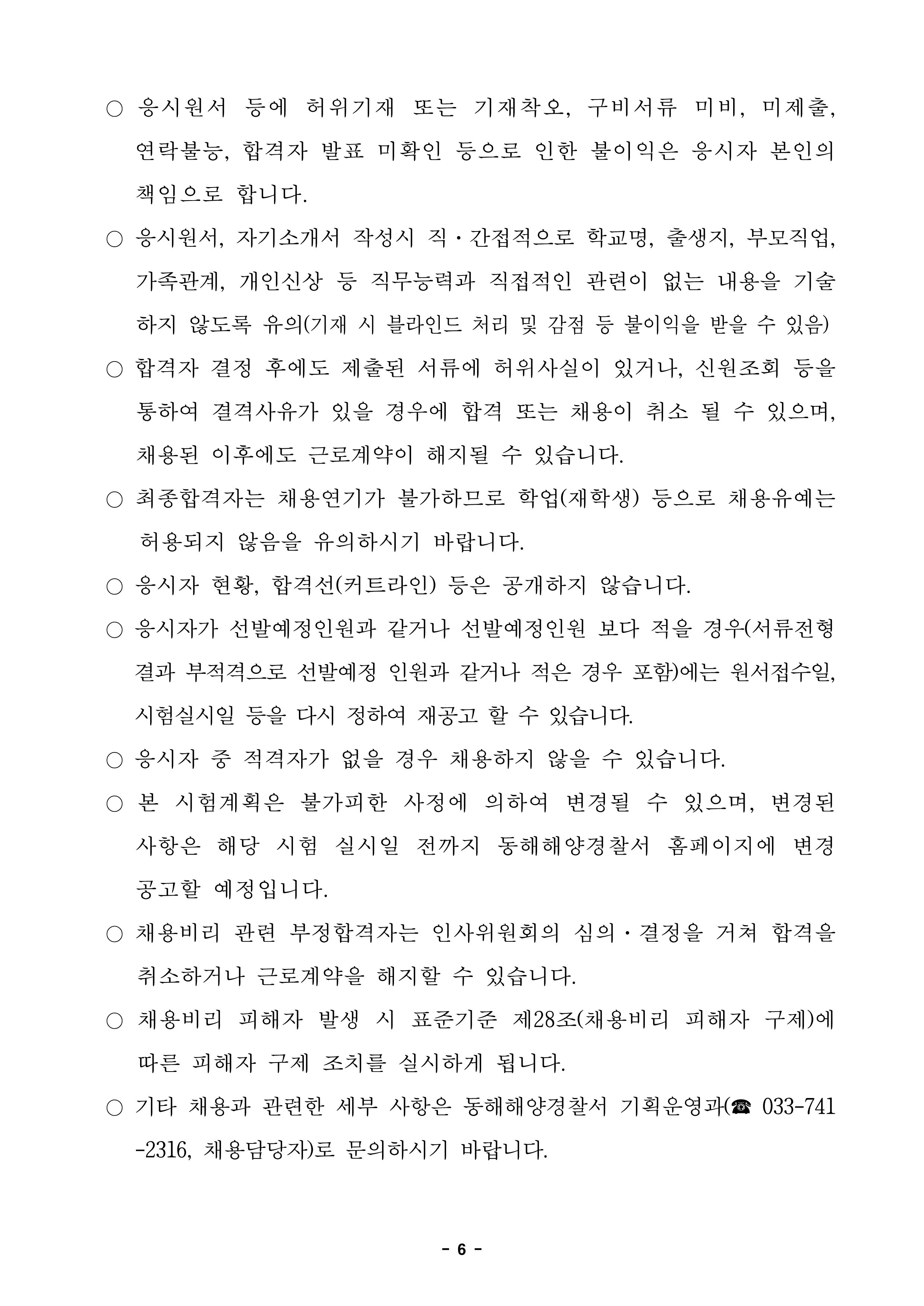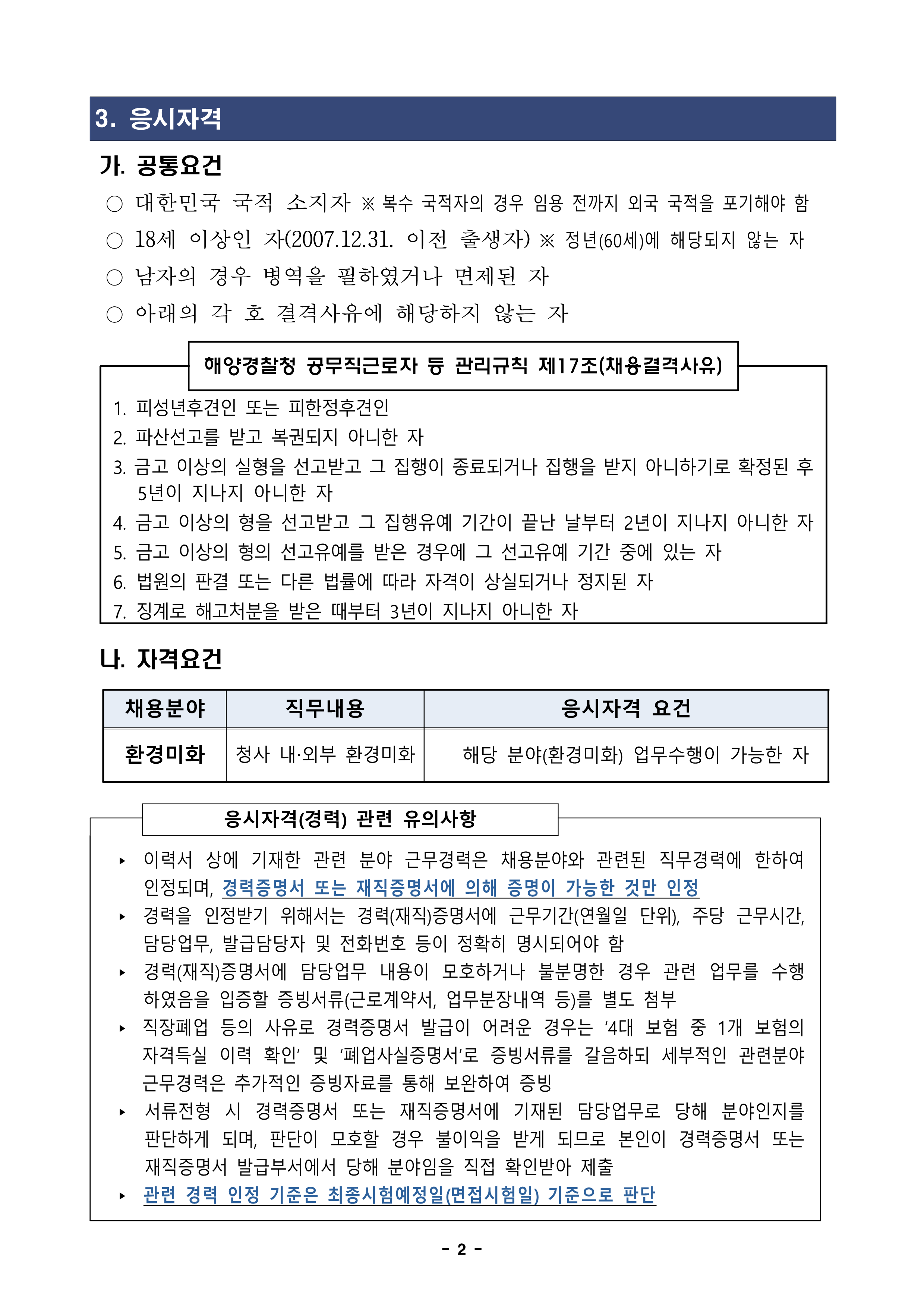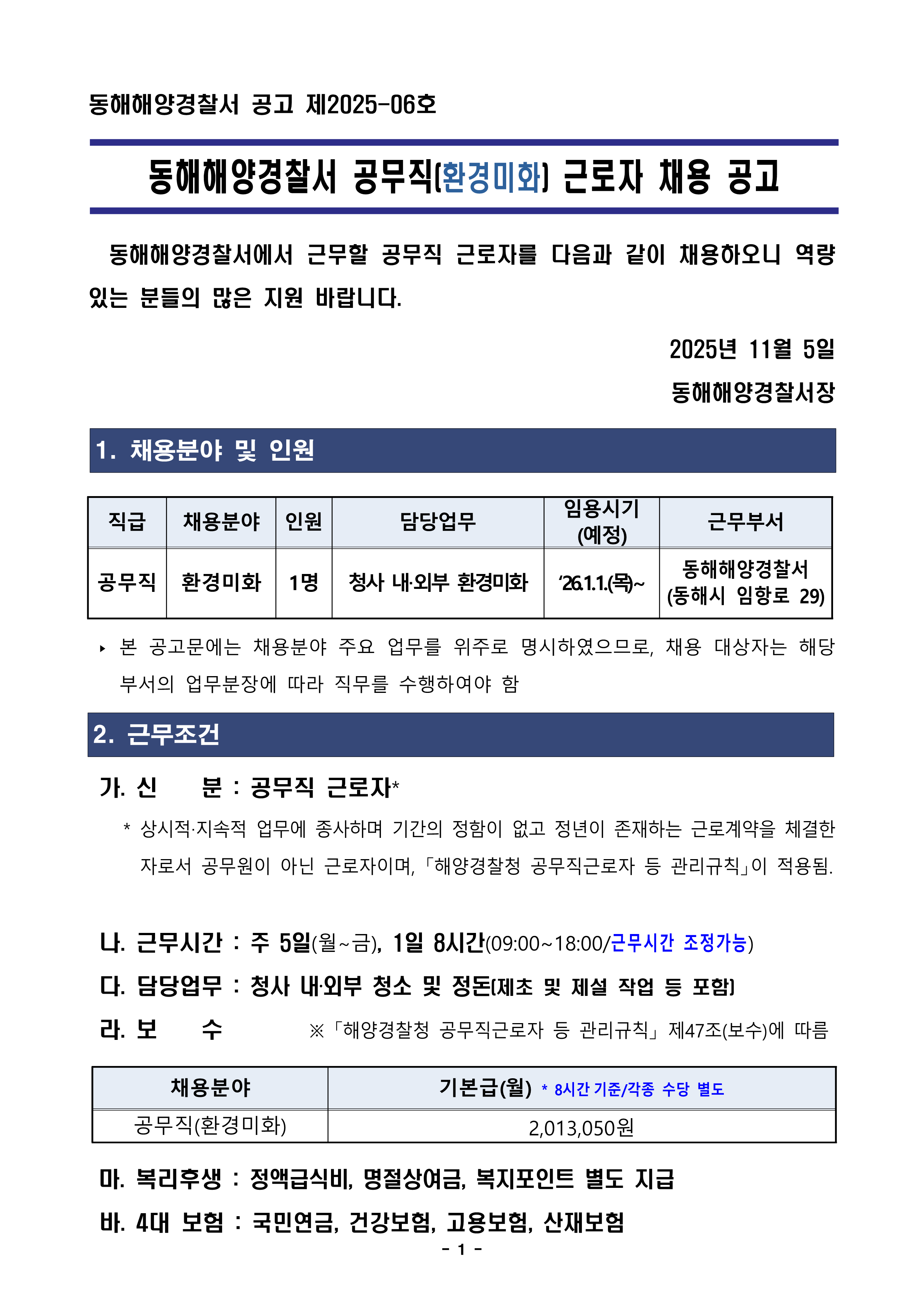 동해해양경찰서 공무직(환경미화) 근로자 채용 공고