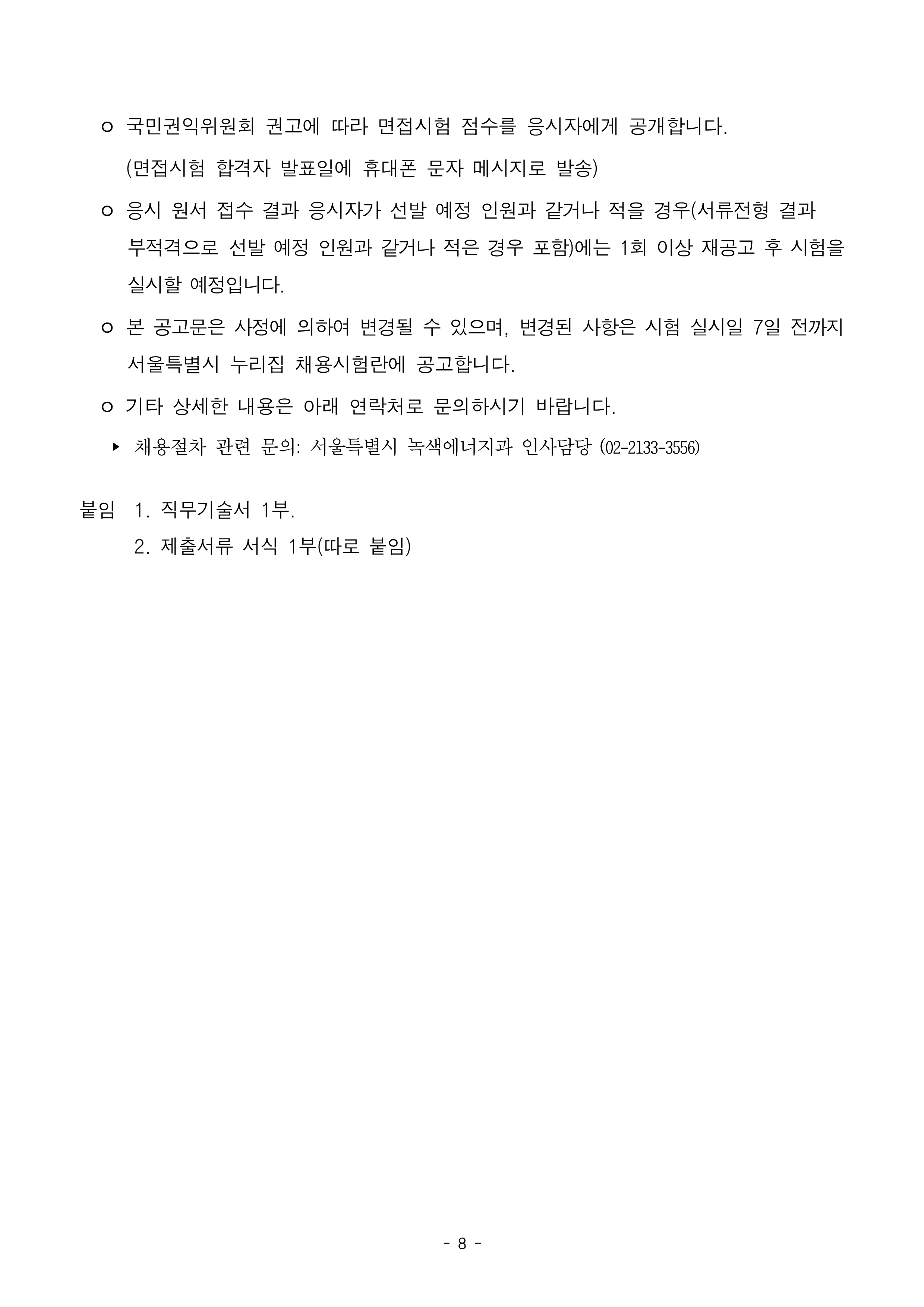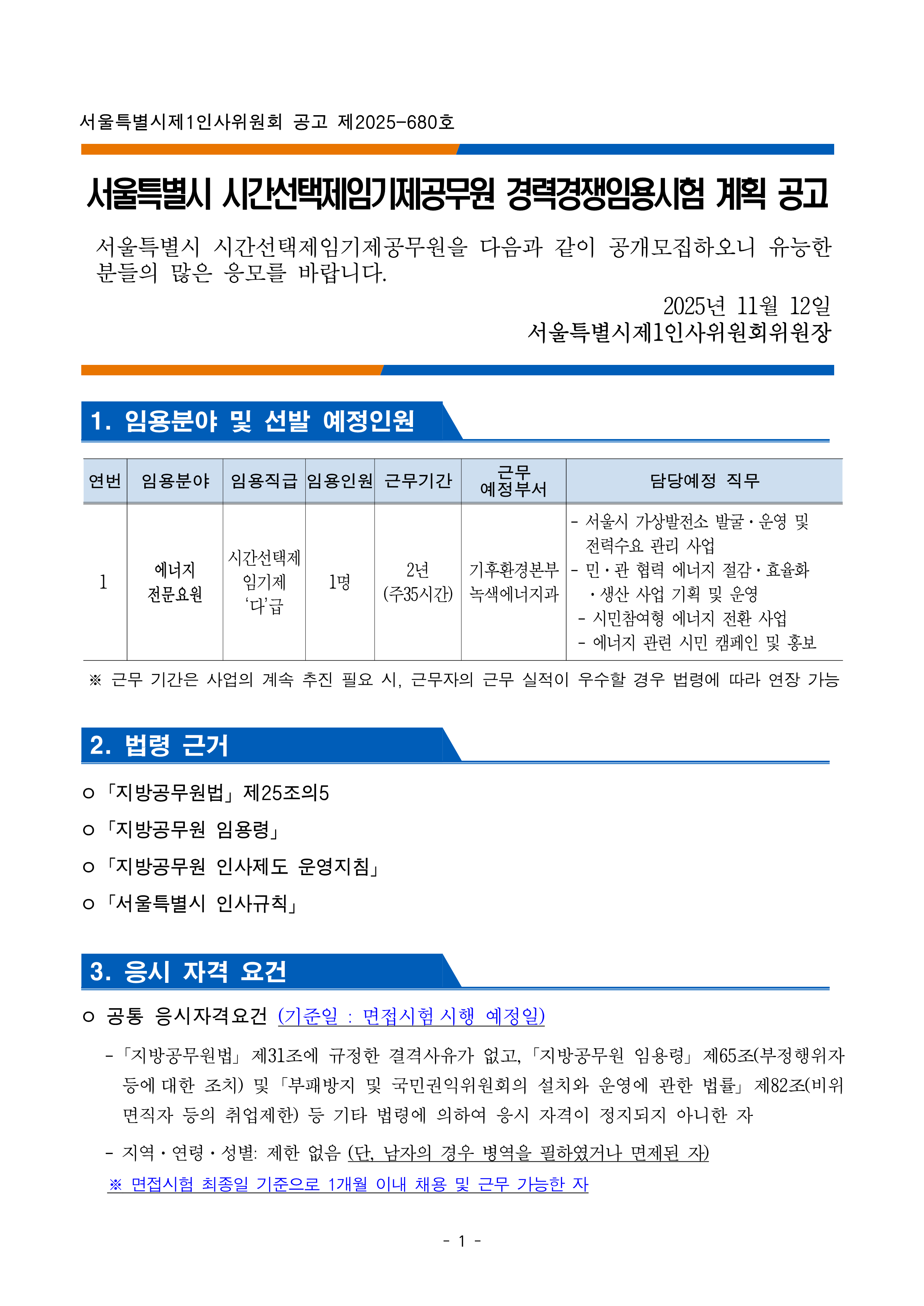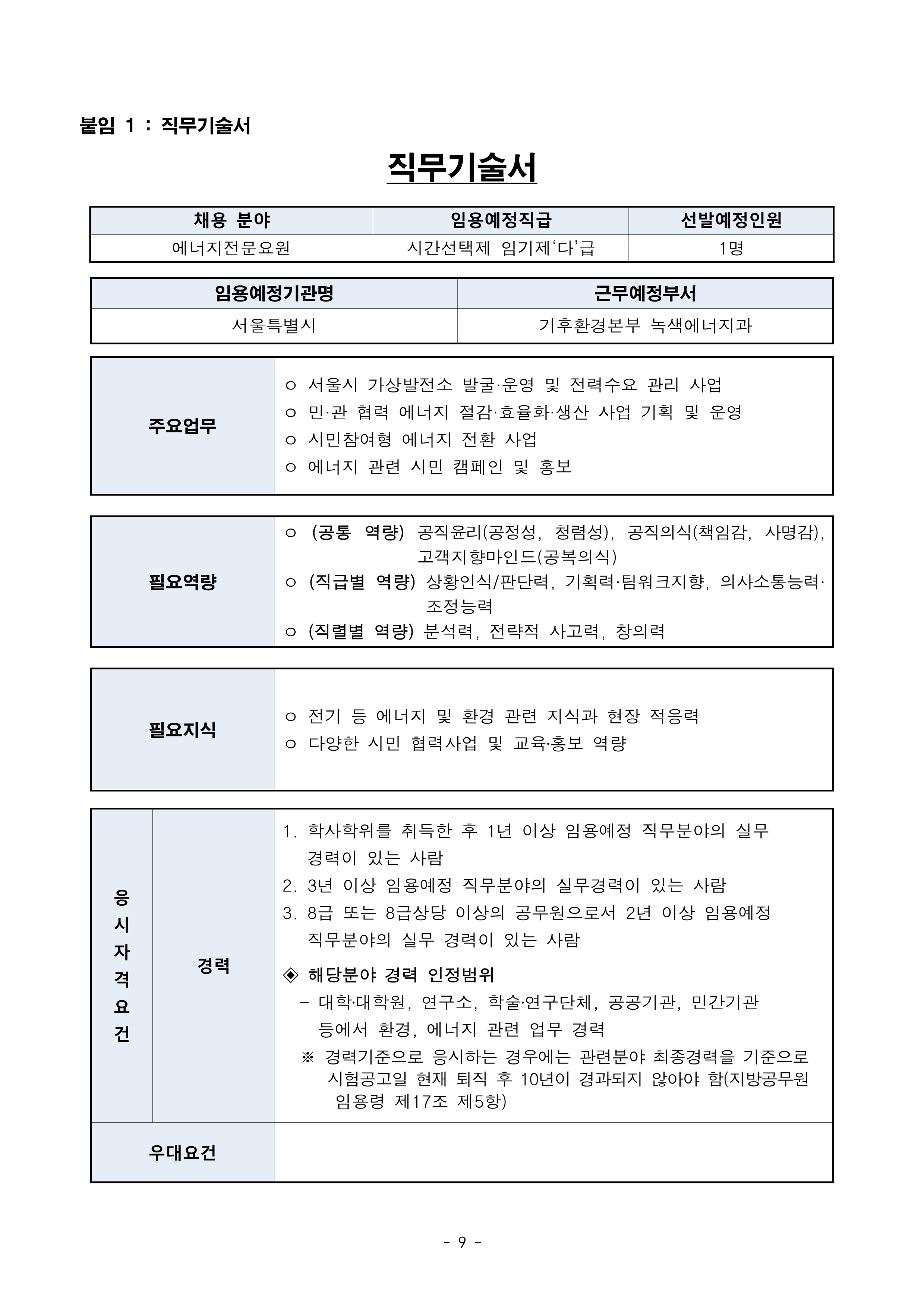 서울특별시 시간선택제 임기제 공무원(에너지 전문요원) 채용 공고