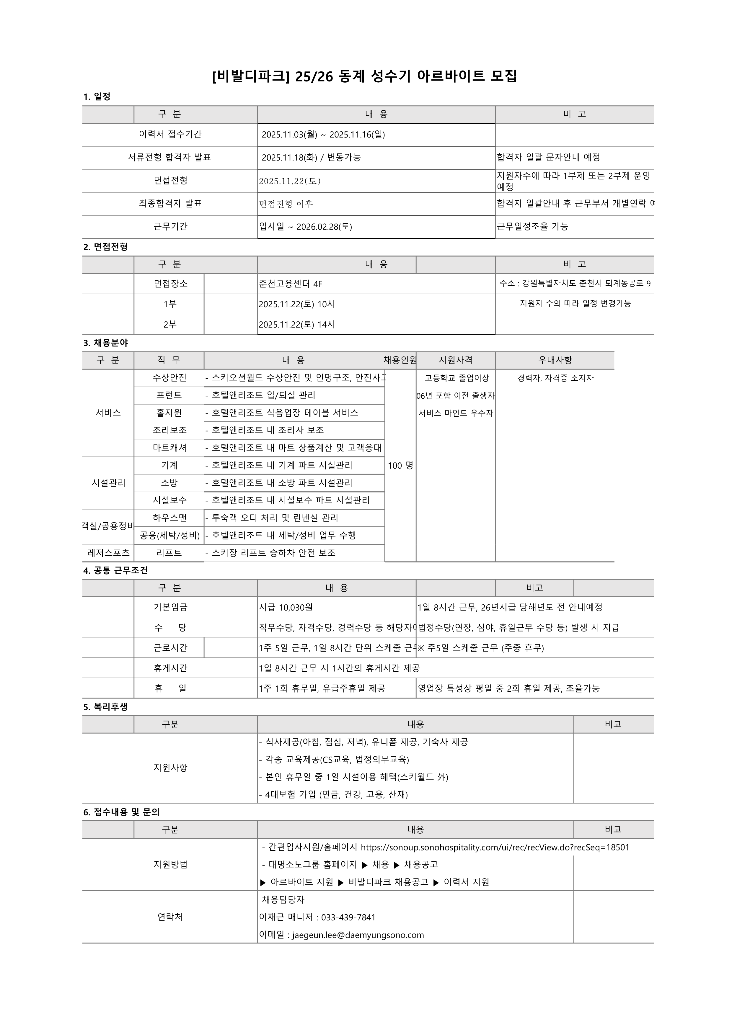 (주)소노인터내셔널 동계시즌(리조트종사원) 채용행사 안내