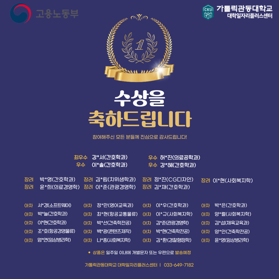 2025년 대학일자리플러스센터 '2025 취업성공수기 공모전' 수상자 발