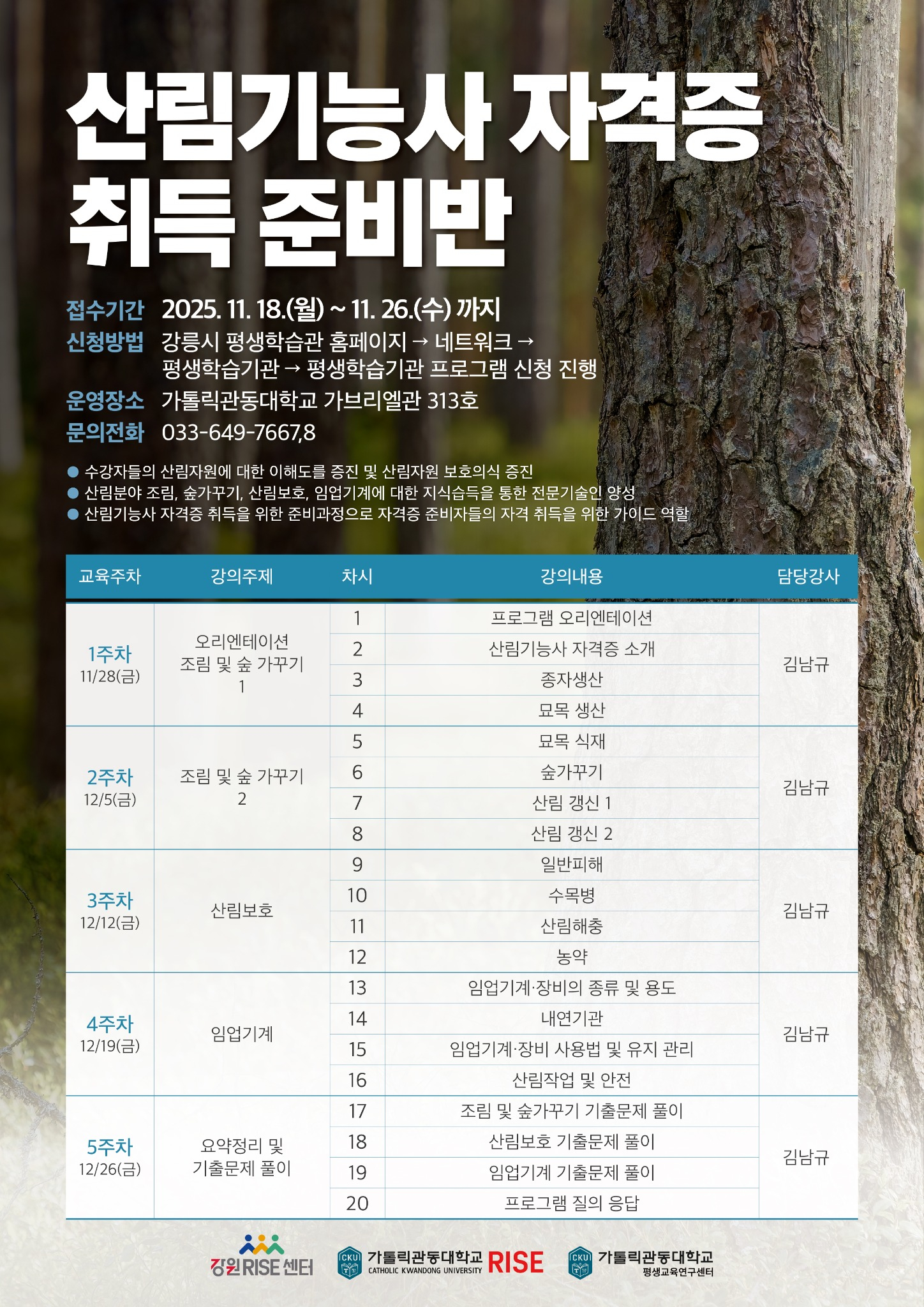 평생교육연구센터x강릉시평생학습관 연계 ''산림기능사 자격증 취득 준비반&
