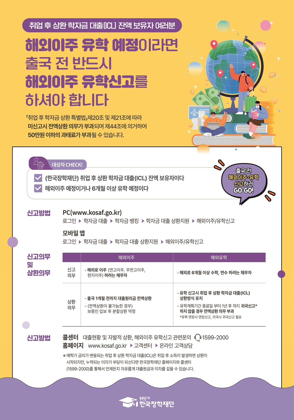 [한국장학재단] 학자금대출 잔액보유자 채무자신고 및 해외이주·유학신고제도 안내