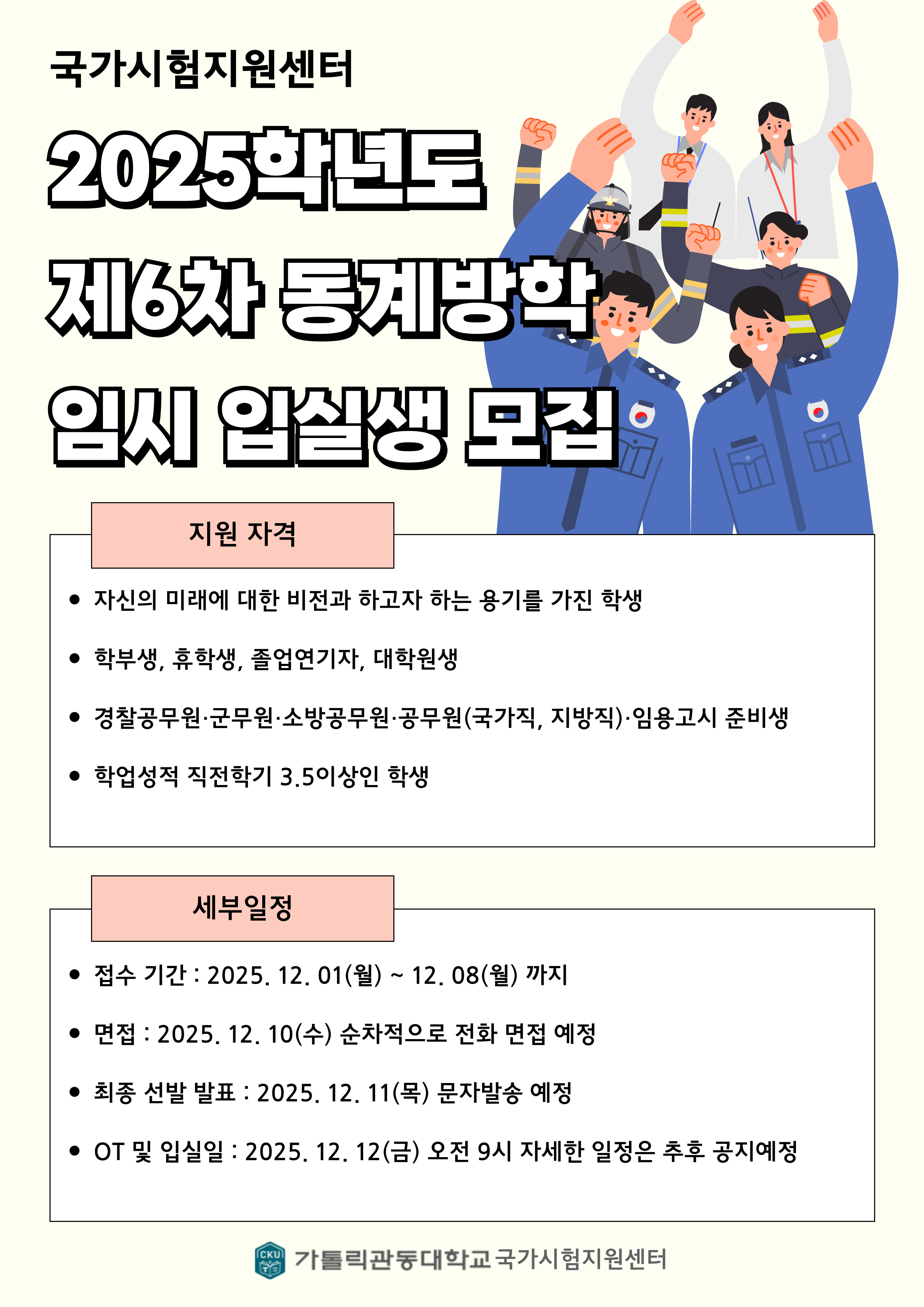 2025학년도 국가시험지원센터 제6차 동계방학 임시입실생 모집 공고