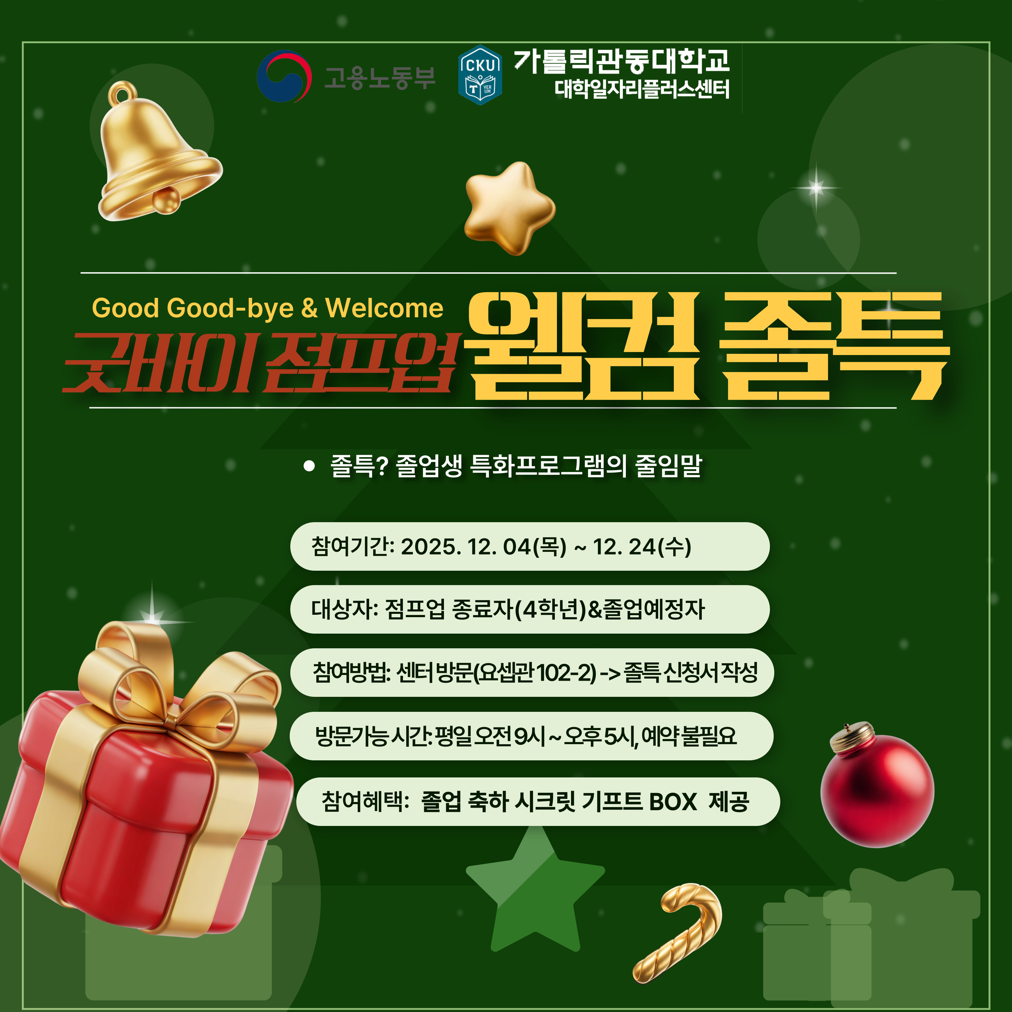 가톨릭관동대학교 대학일자리플러스센터에서는 점프업(4학년) 졸업을 축하드리고