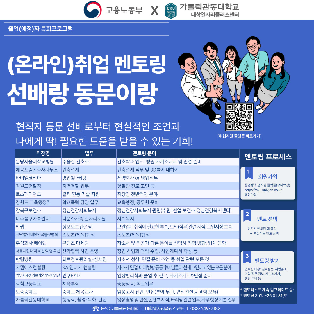 ☎ 문의: 가톨릭관동대학교 대학일자리플러스센터 / T: 033-649-7182