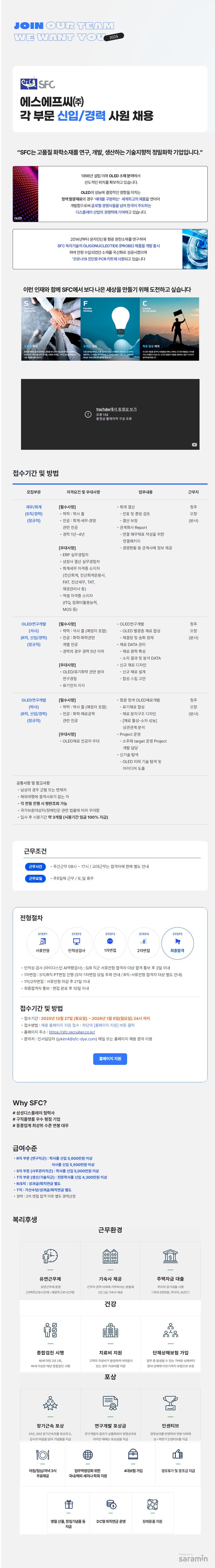 [에스에프씨] 26년 1월 각 부문 신입/경력 사원 채용 (~1/5)