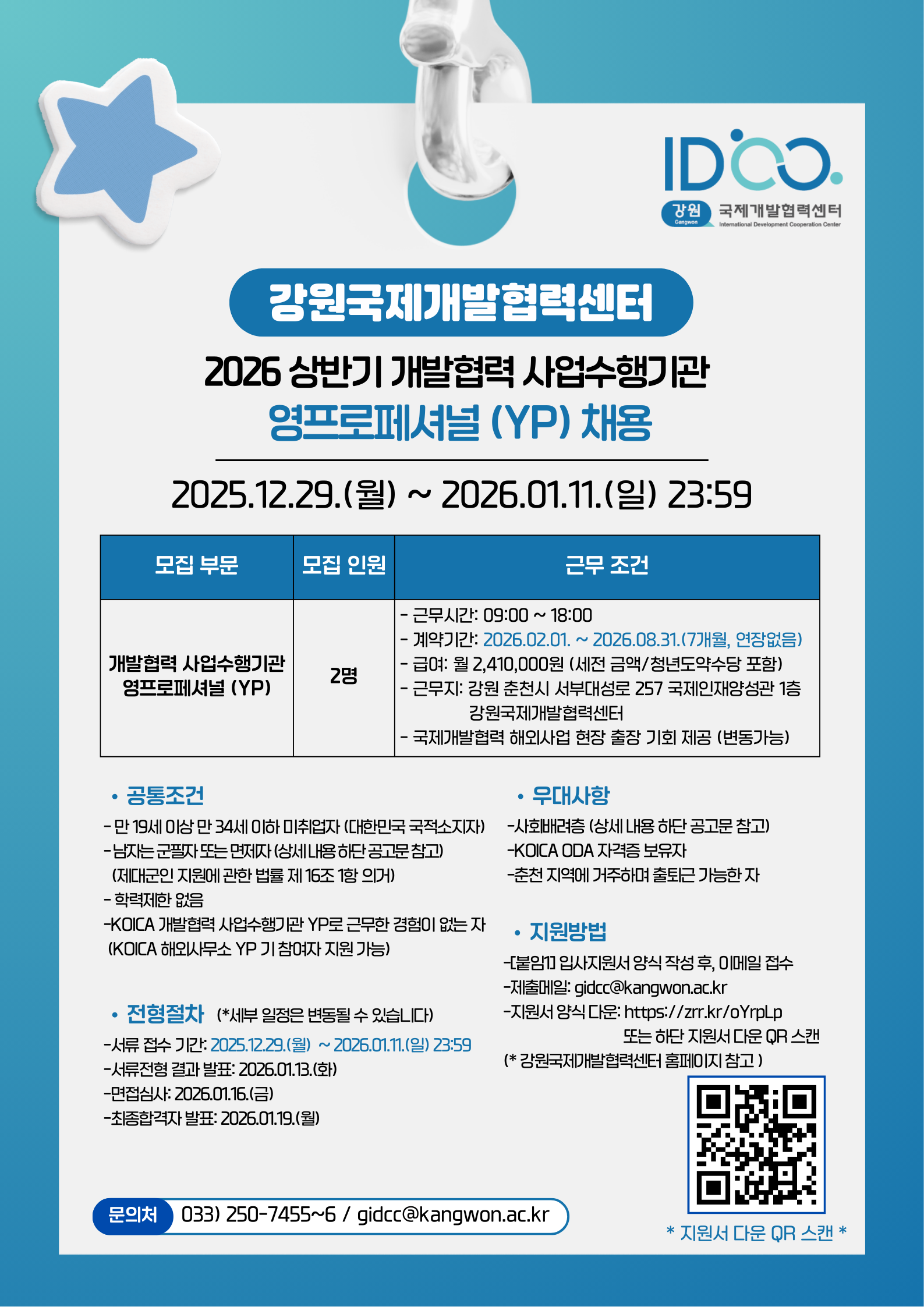 [강원국제개발협력센터] 2026년 상반기 개발협력 사업수행기관 영프로페셔널(YP) 채용 (