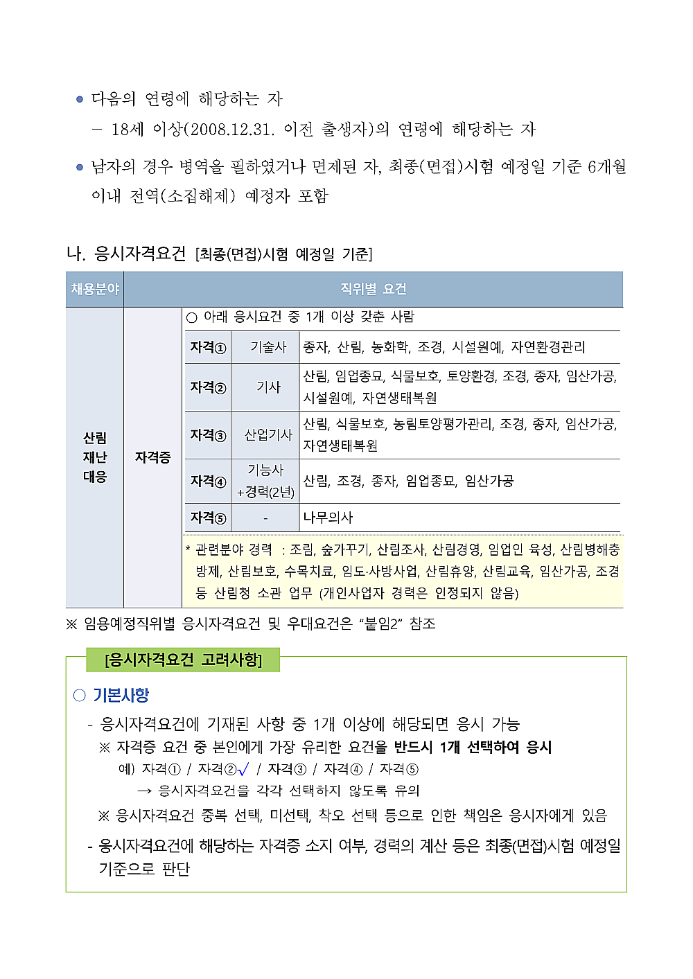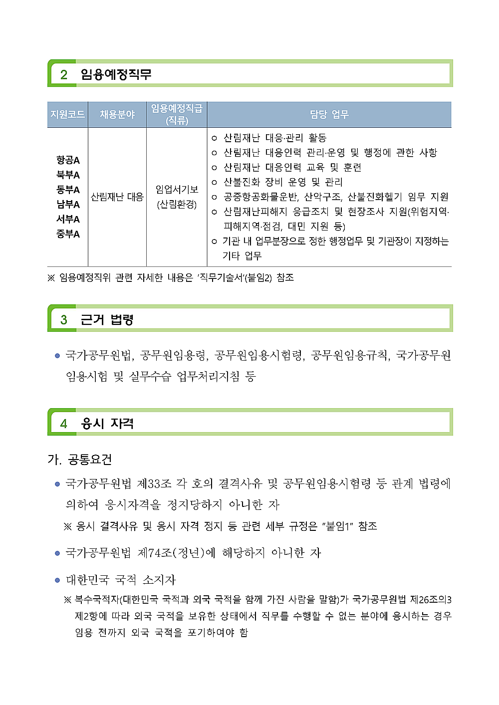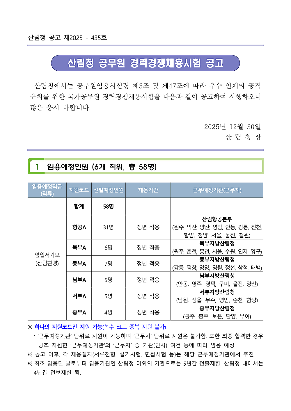 산림청 임업직 국가공무원 경력경쟁채용시험 공고 안내