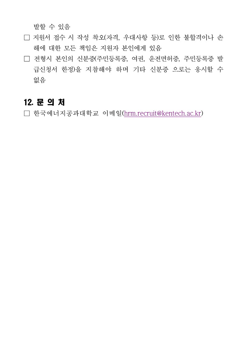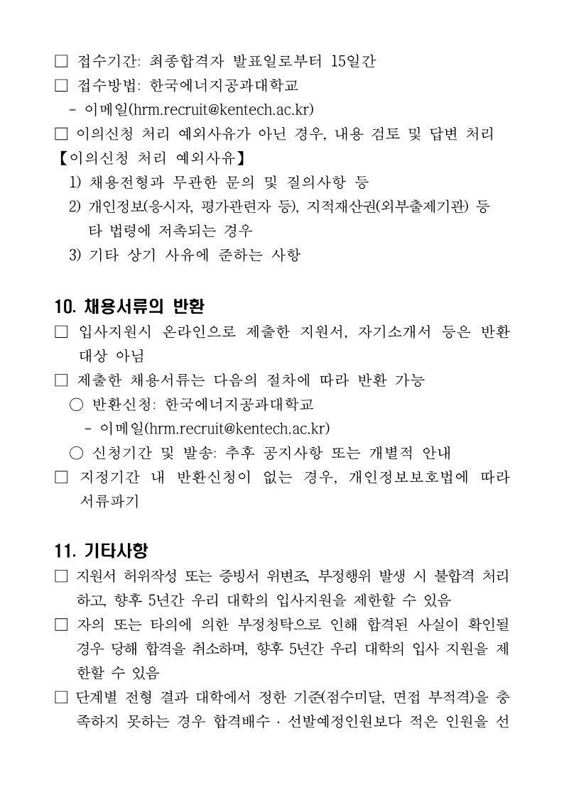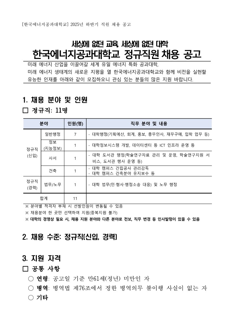 한국에너지공과대학교 정규직원 채용 공고 (~1/20)
