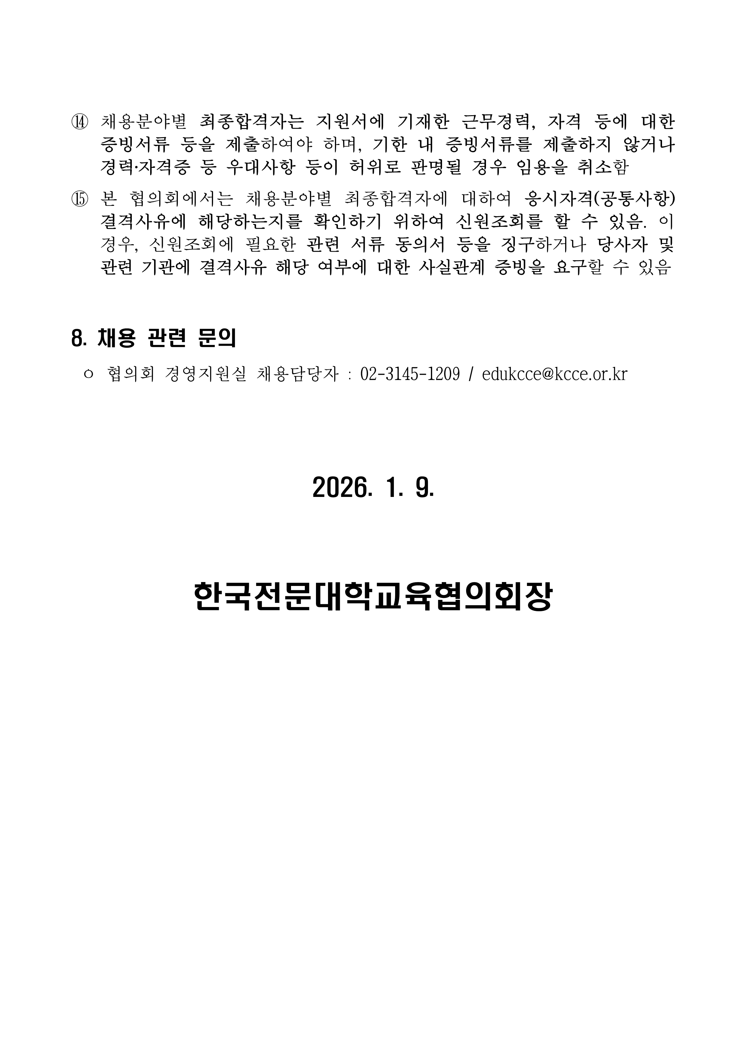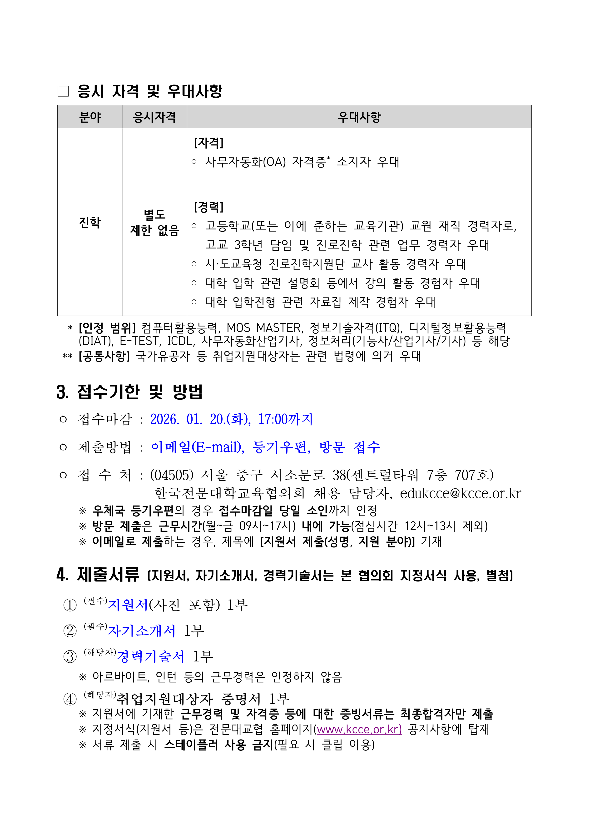한국전문대학교육협의회 채용 공고(진학) 안내(~1/20)