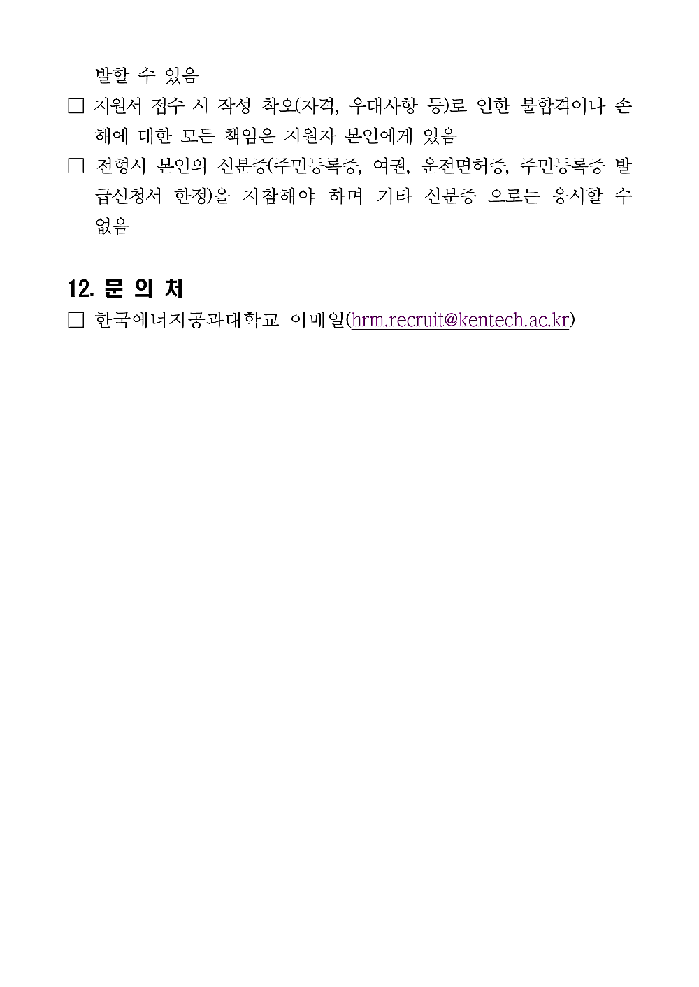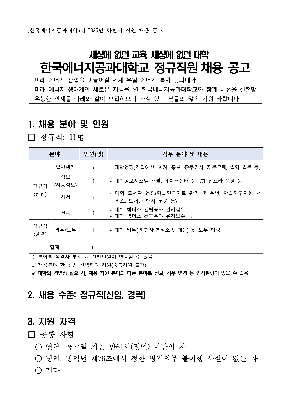 한국에너지공과대학교 직원 채용 공고 안내