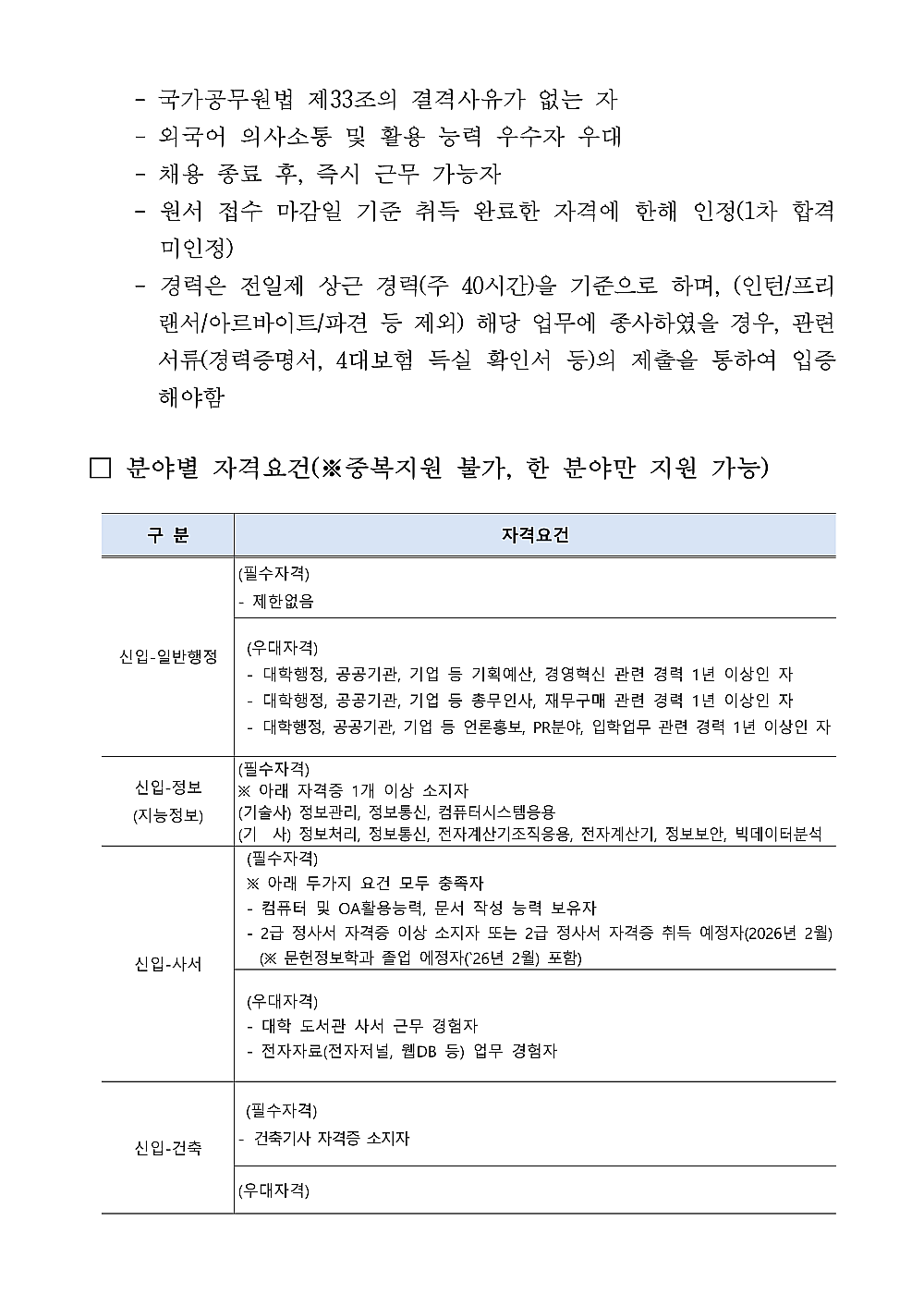 2026학년도 1학기 비전임교원(겸임 초빙) 신규채용 공고 (2차)