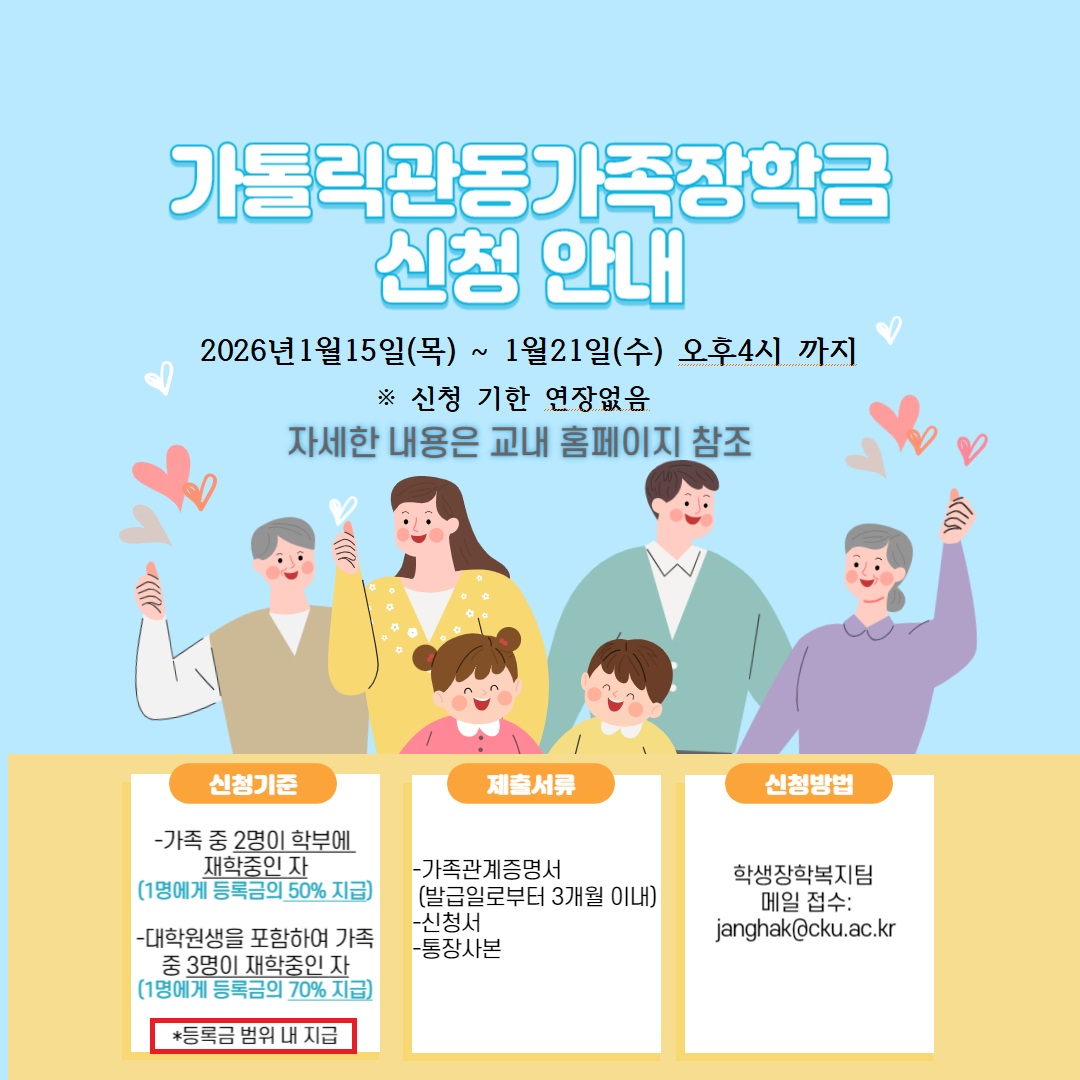 2025-2학기 가톨릭관동가족장학금 신청 안내