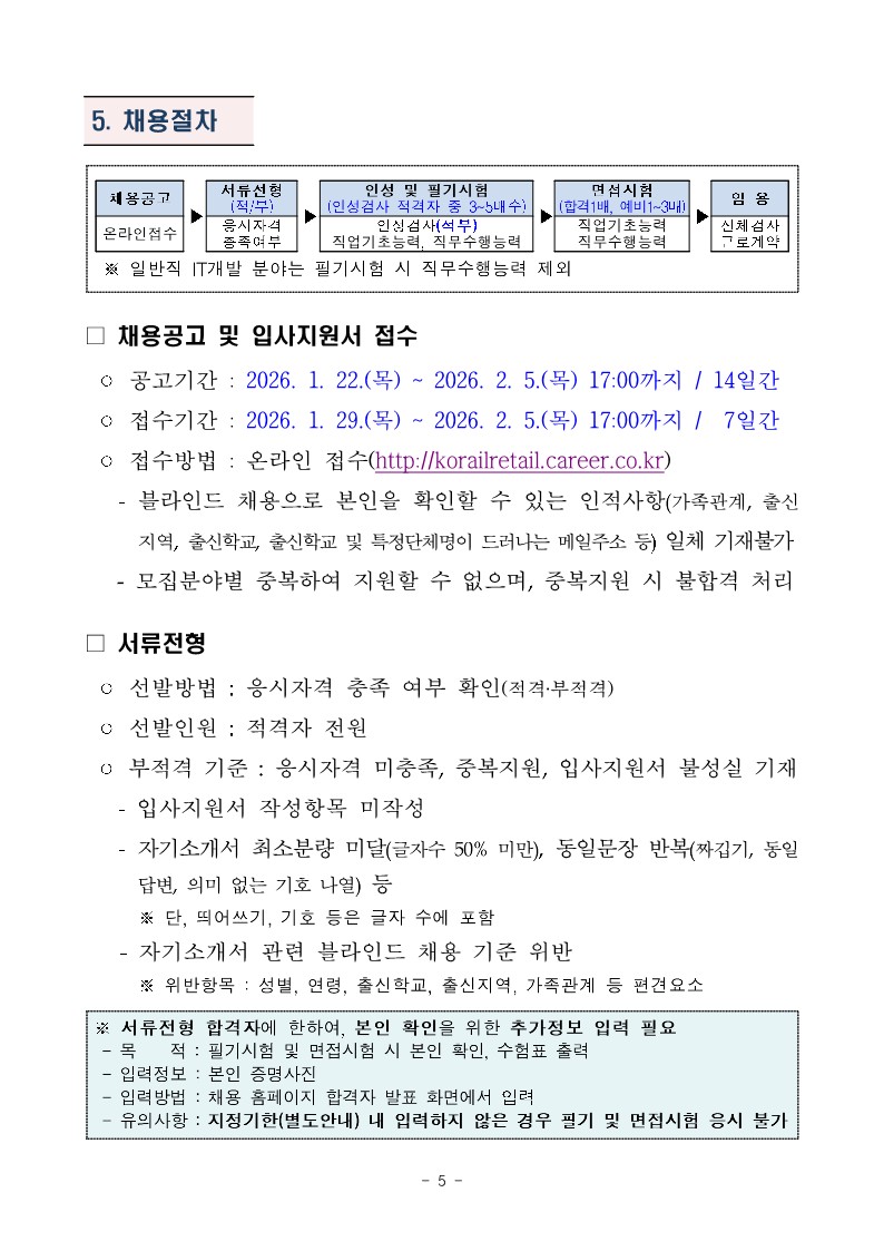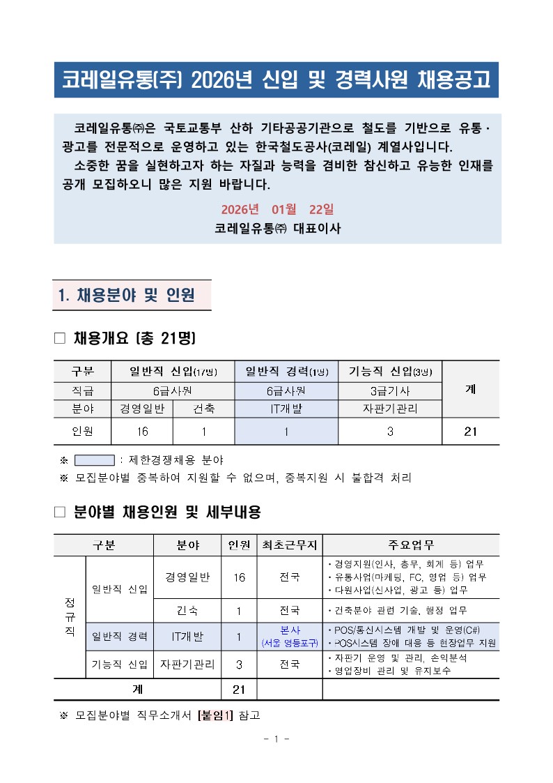 코레일유통(주) 2026년 신입 및 경력사원 채용공고 (~2/5)