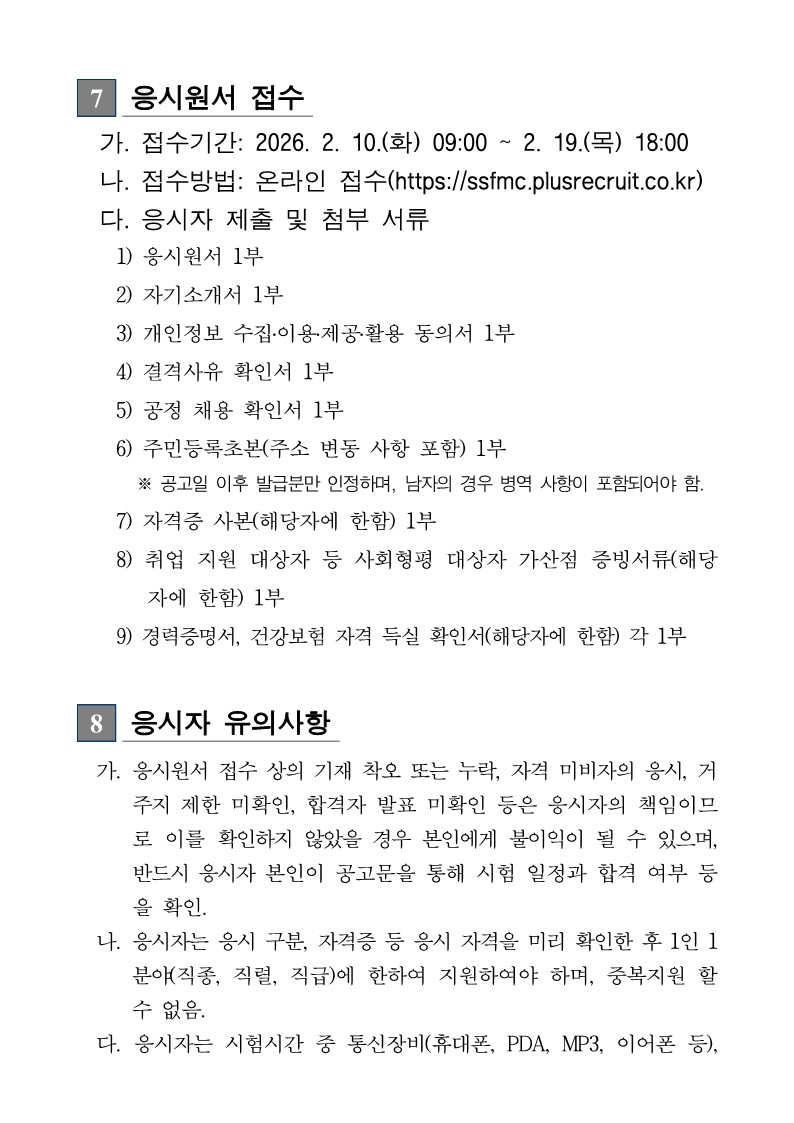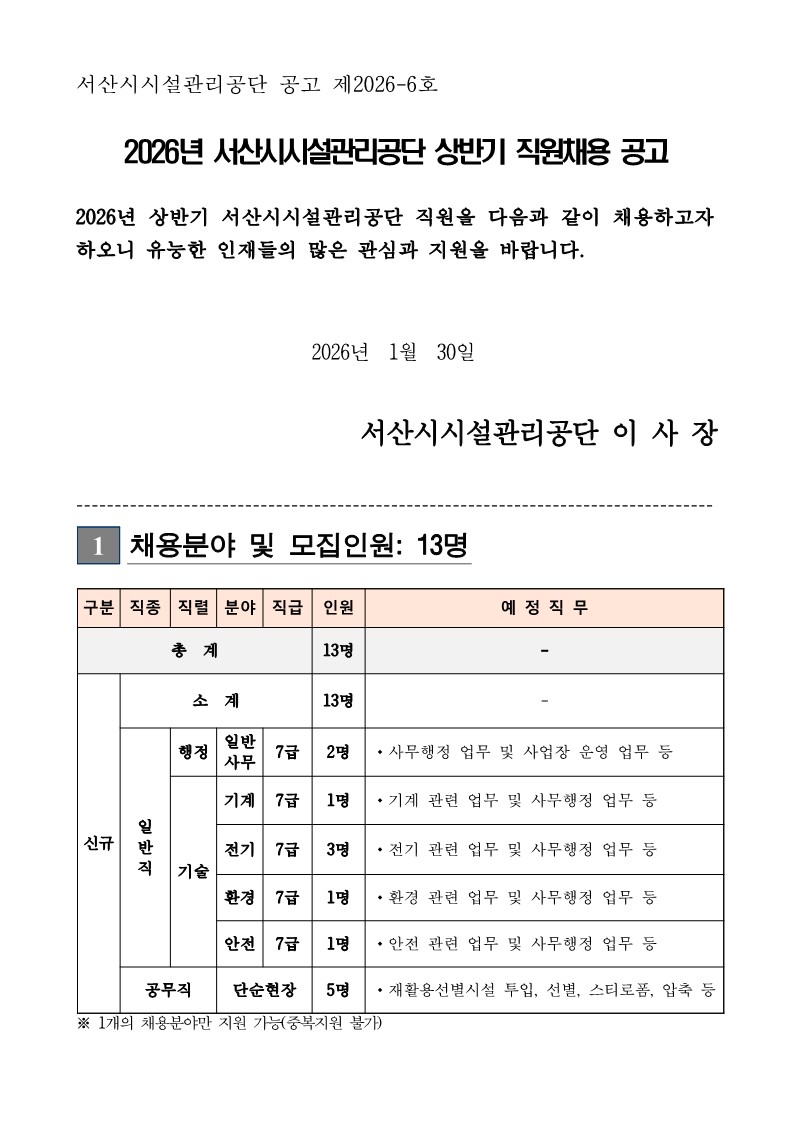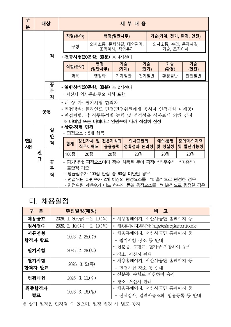 2026년 서산시시설관리공단 상반기 직원채용 공고 (~2/19)