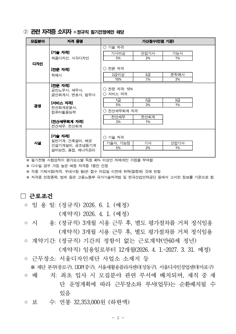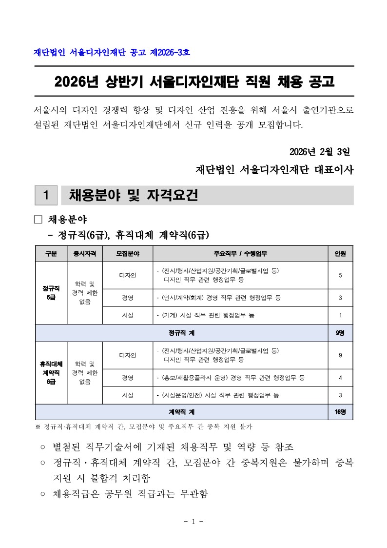 2026년 상반기 서울디자인재단 직원 채용 공고(~2/24)