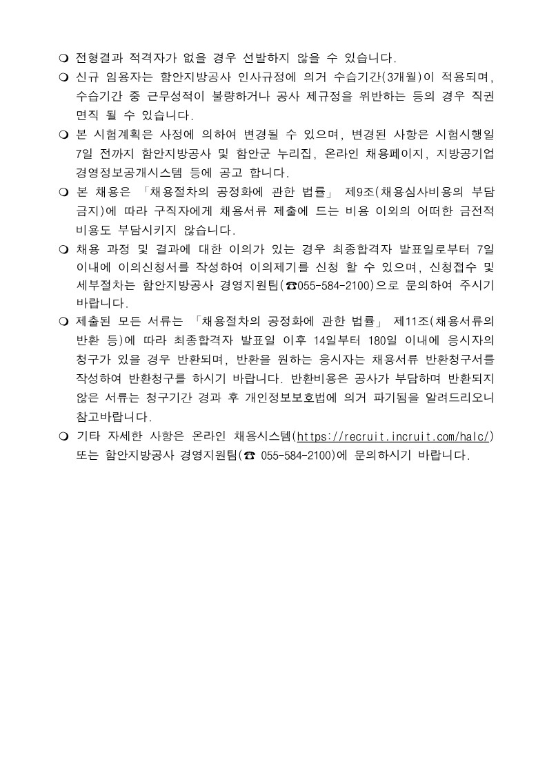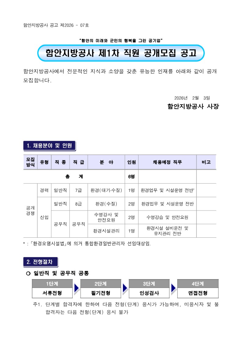 함안지방공사 제1차 직원 공개모집 공고(~2/19)