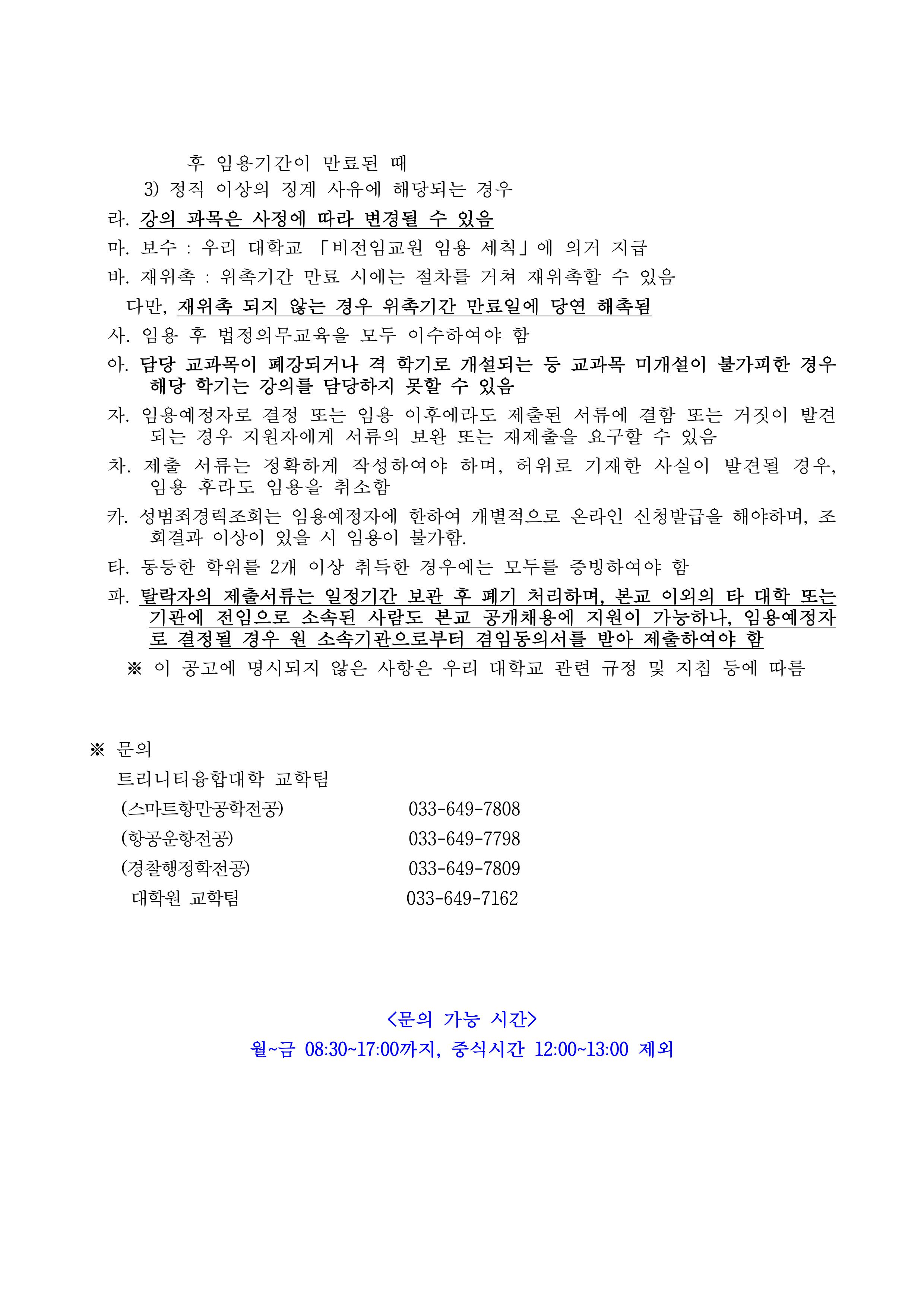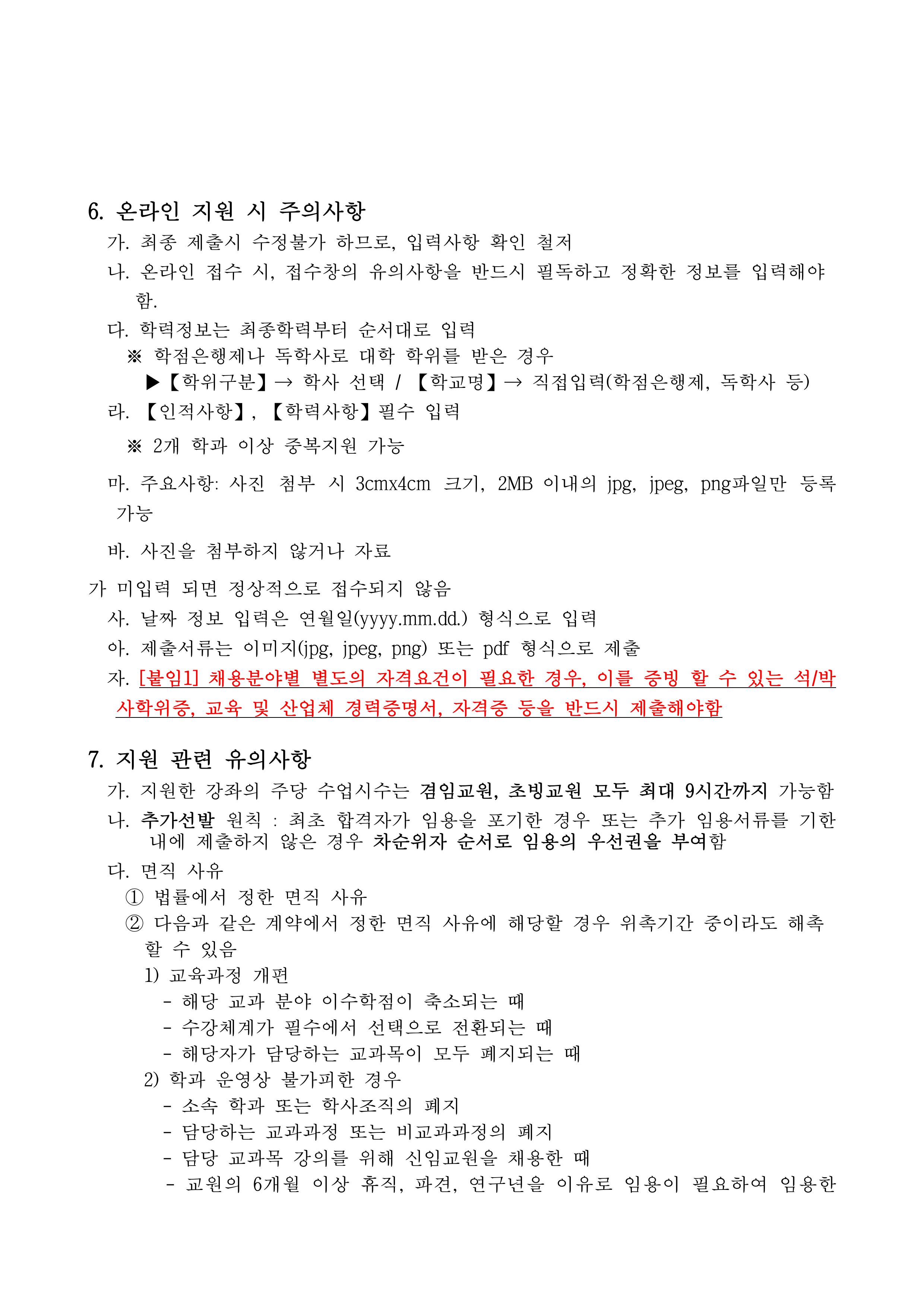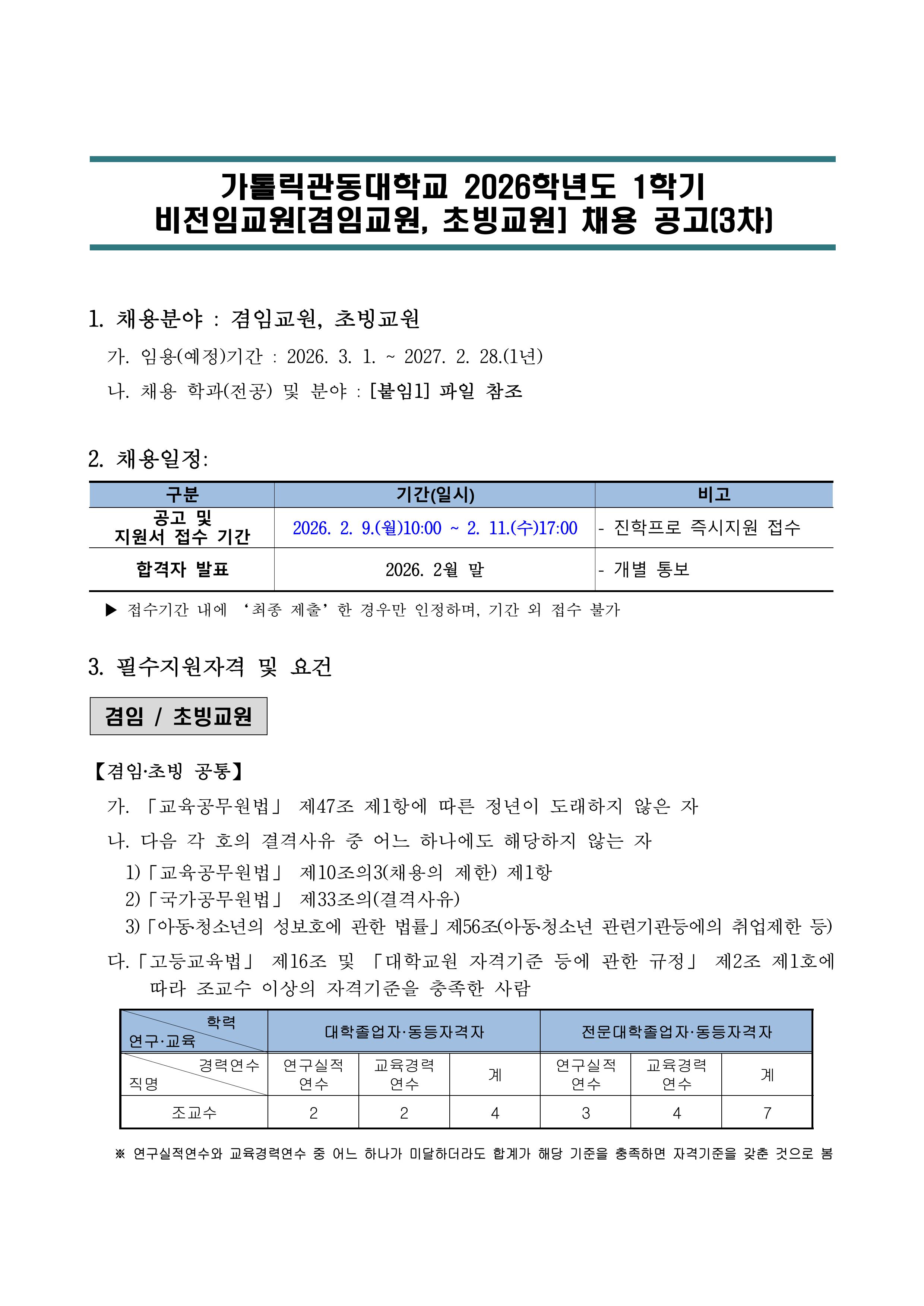 2026학년도 1학기 비전임교원(겸임, 초빙) 채용 공고(3차)
