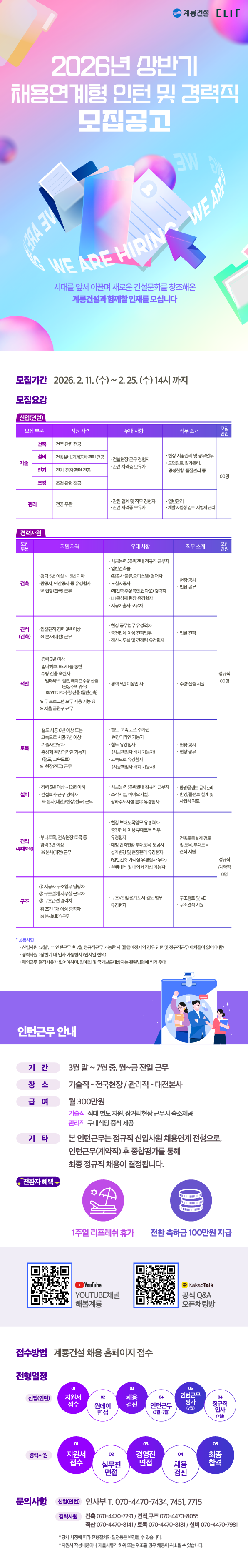 2026년 계룡건설 채용연계형 인턴 및 경력직 모집