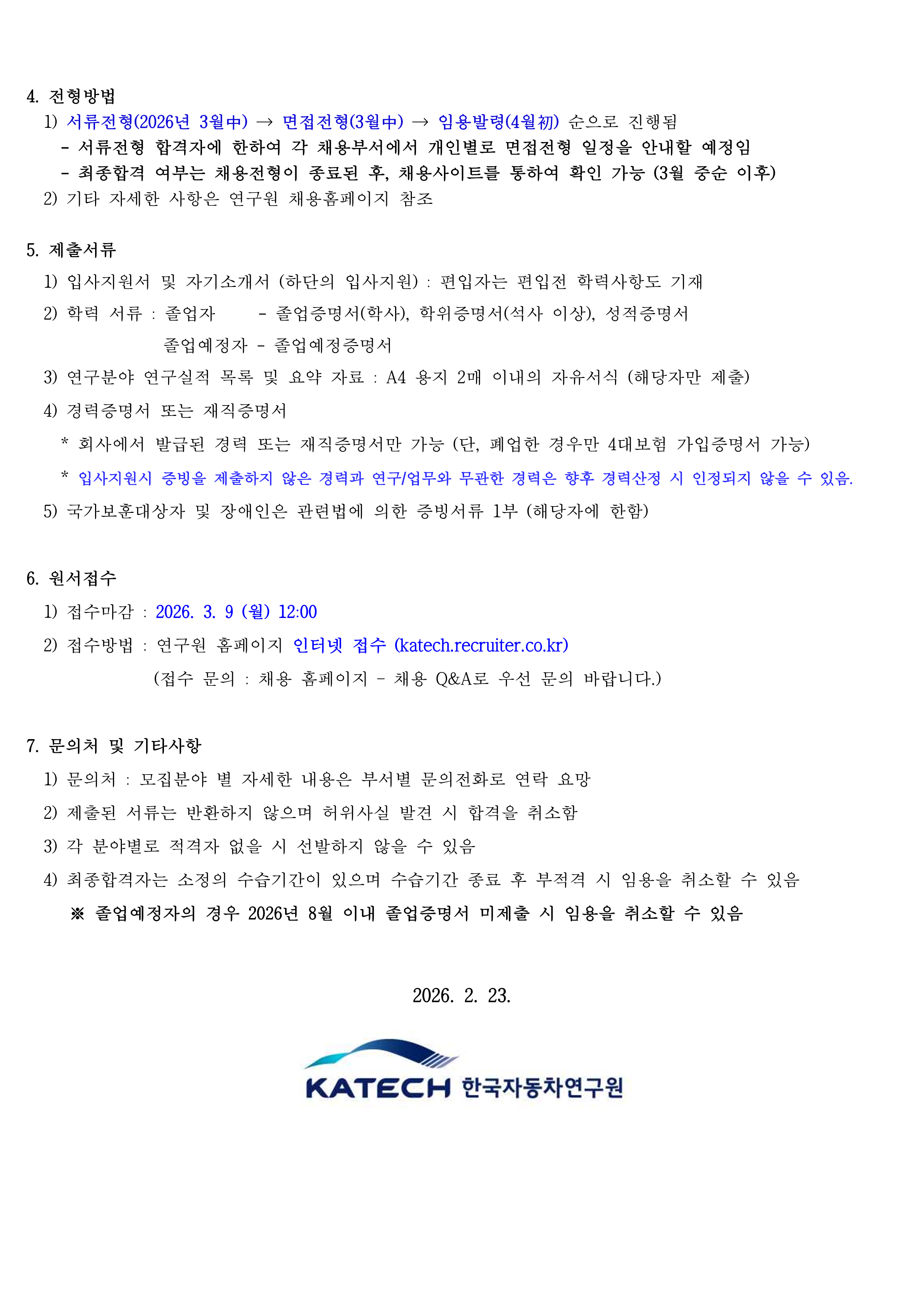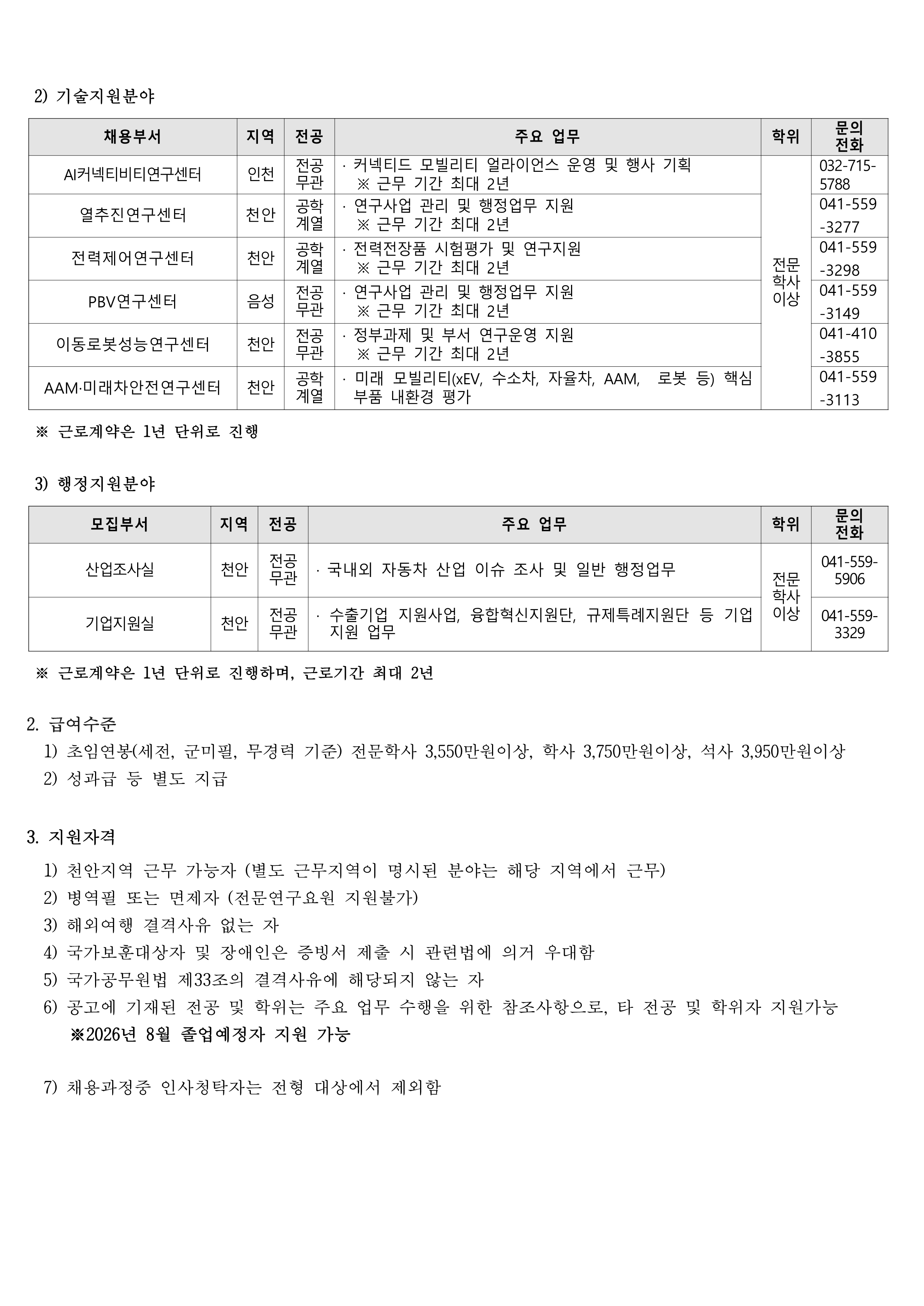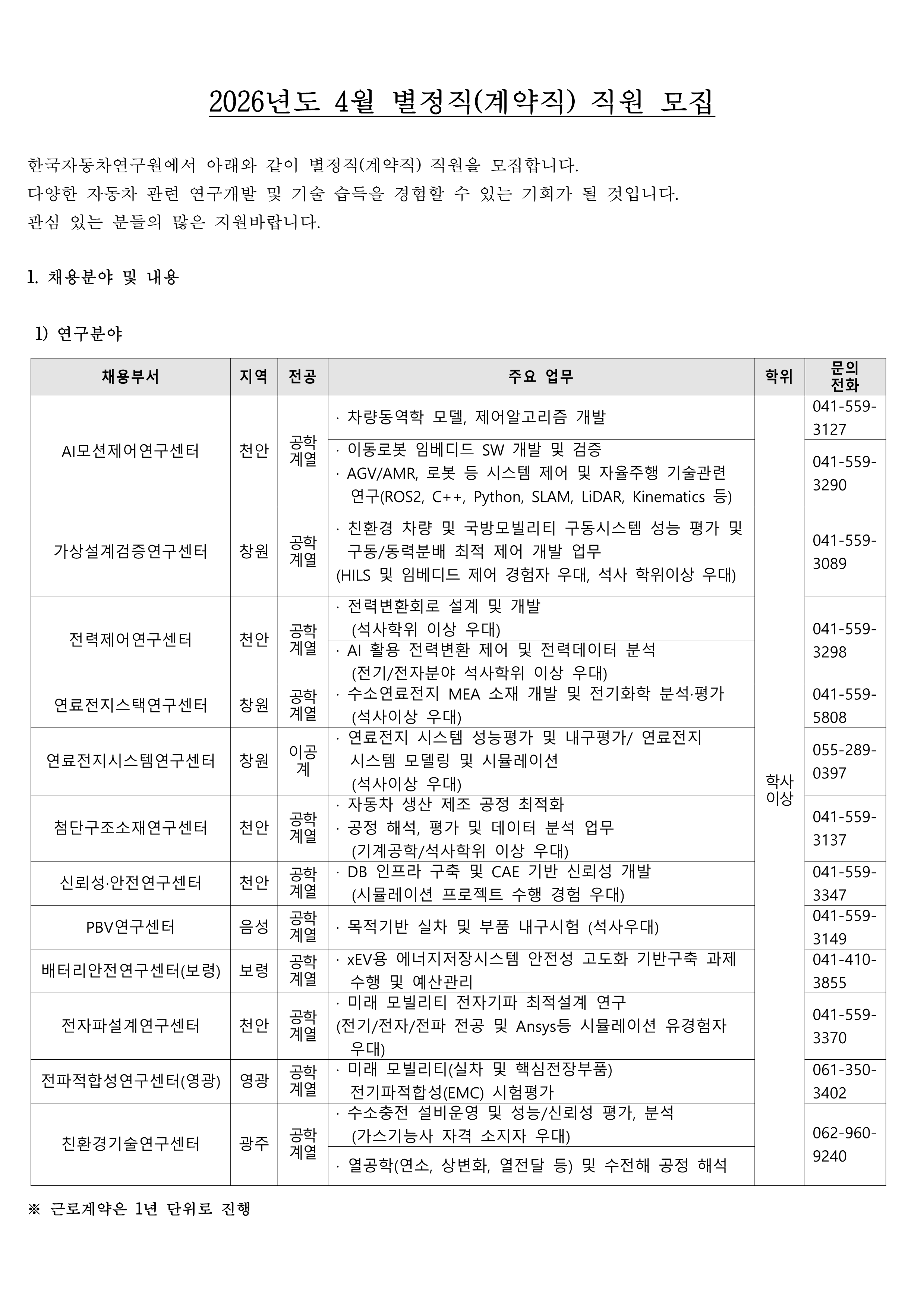 [한국자동차연구원] 별정직(계약직) 채용 공고