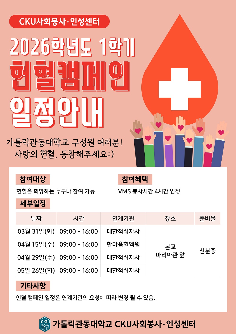 [CKU사회봉사·인성센터] 2026-1학기 헌혈캠페인 안내