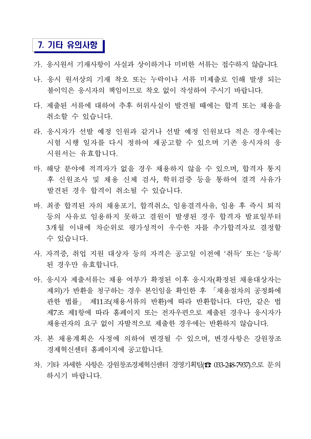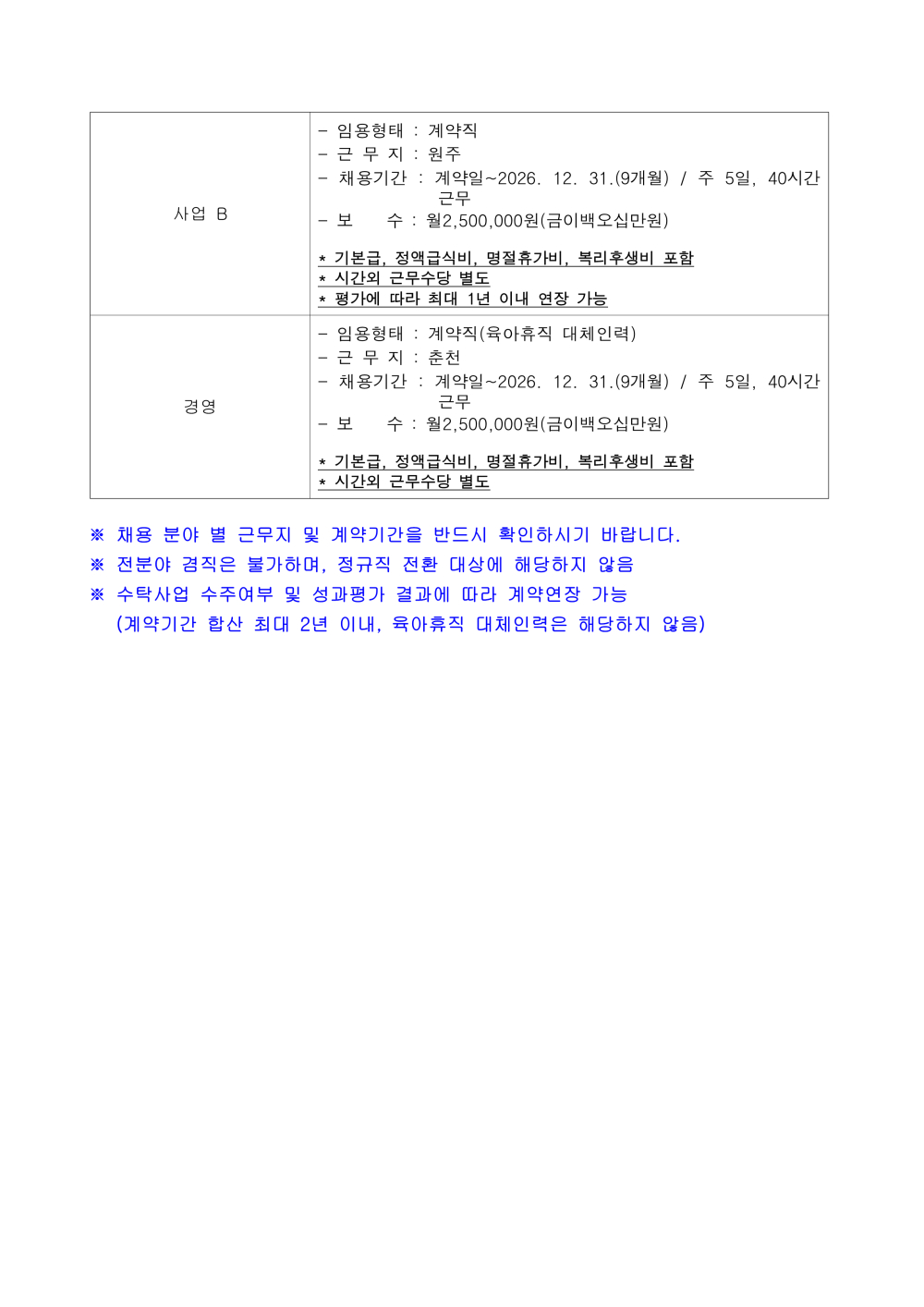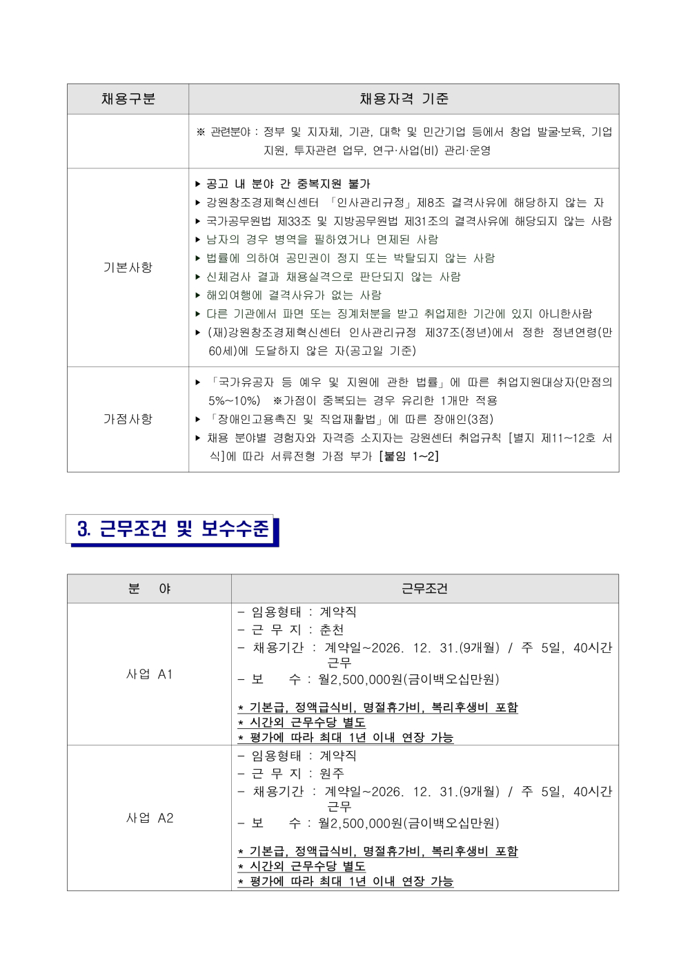 [(재)강원창조경제혁신센터] 2026년 제2회 직원 채용(계약직) 공고