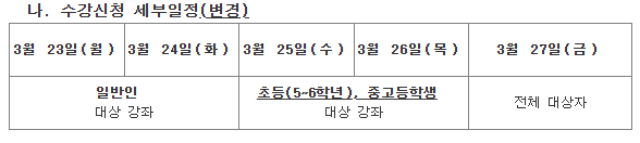 나. 수강 대상: 초(5·6학년)·중·고, 대학생 및 일반인 누구나 신청 가능