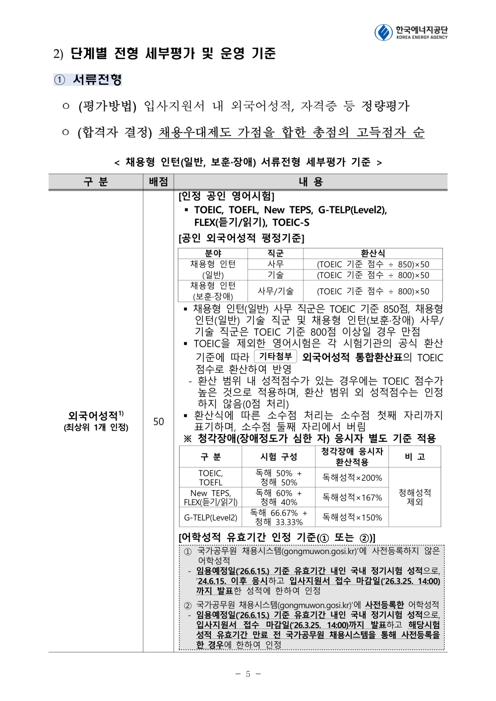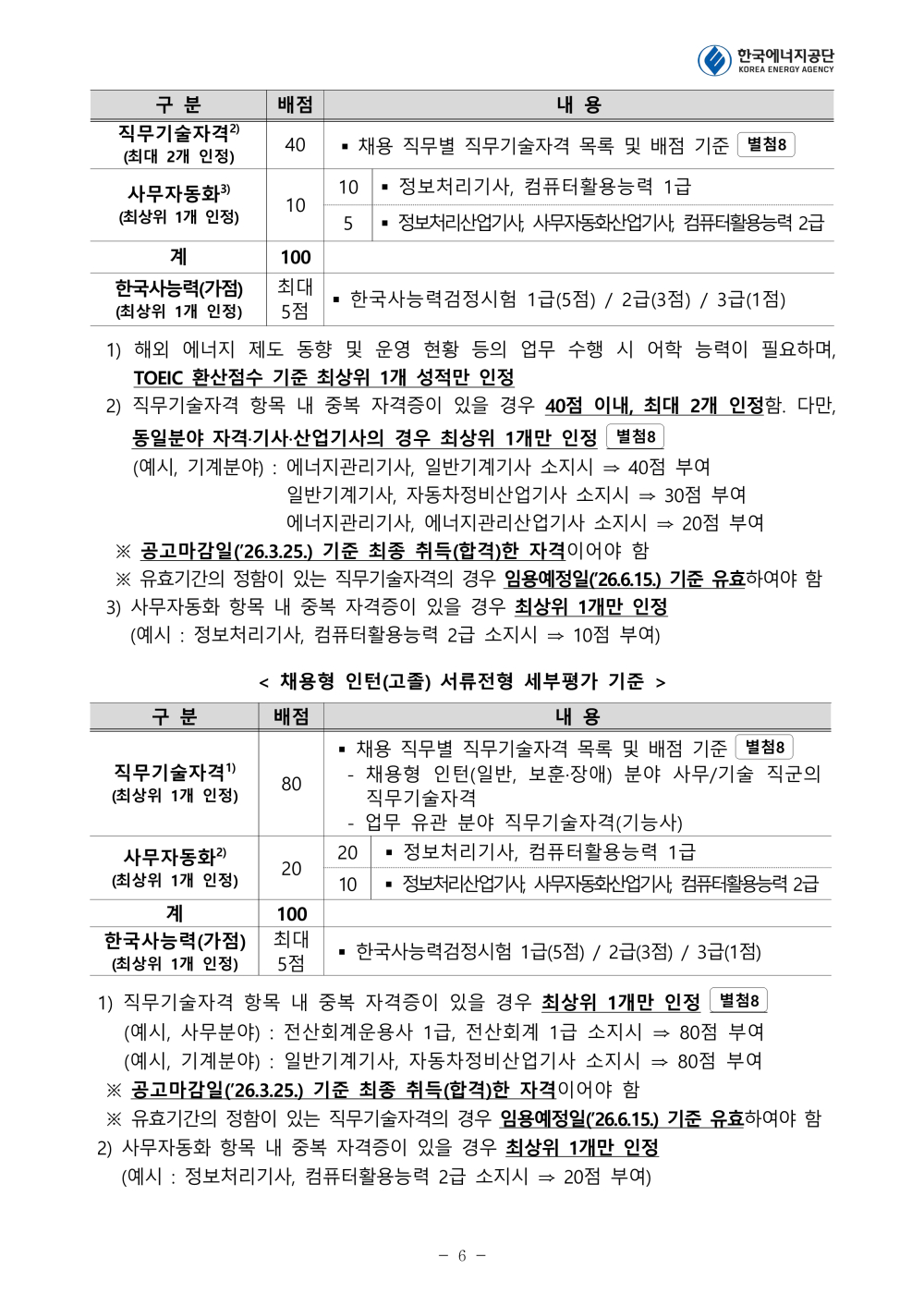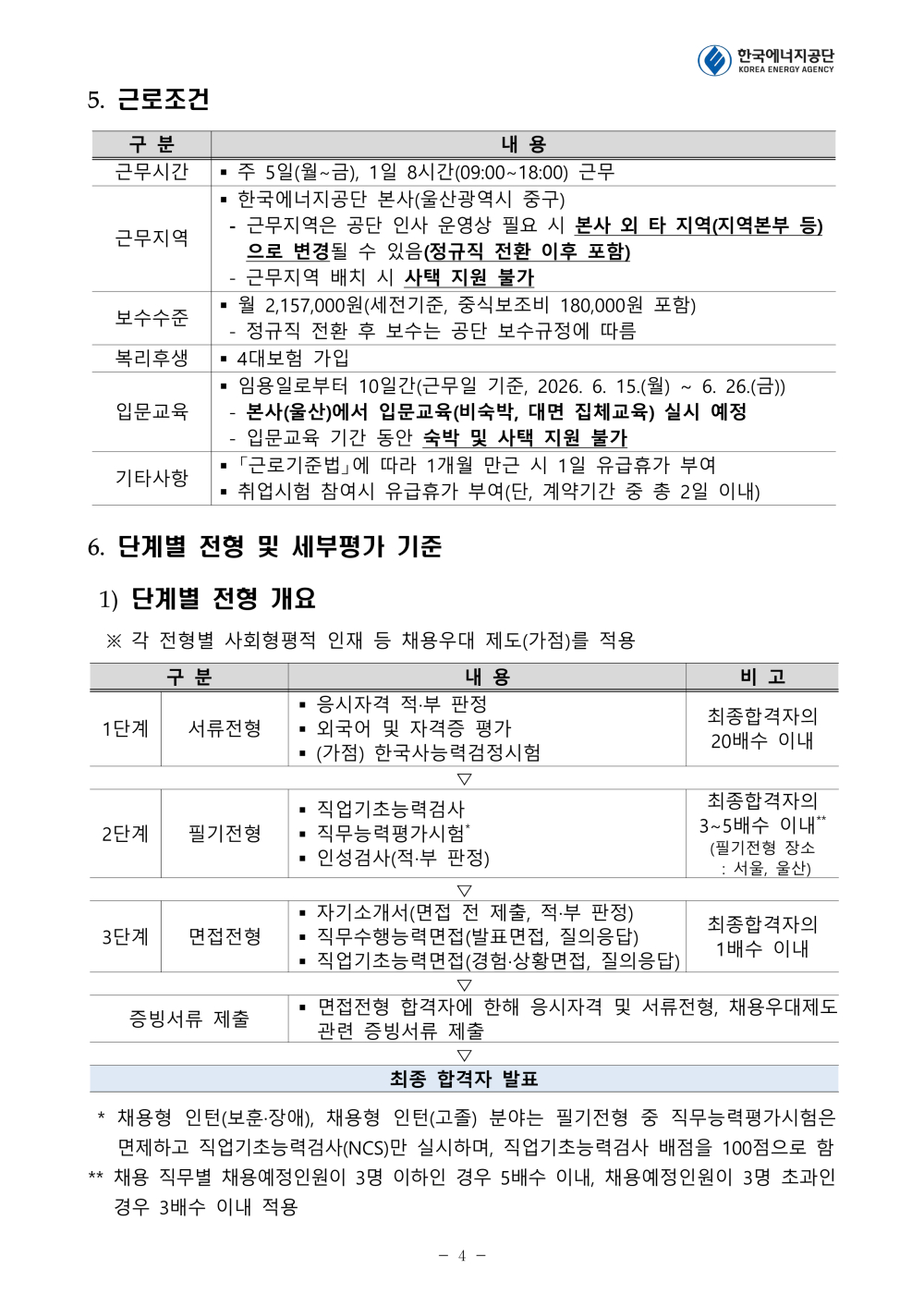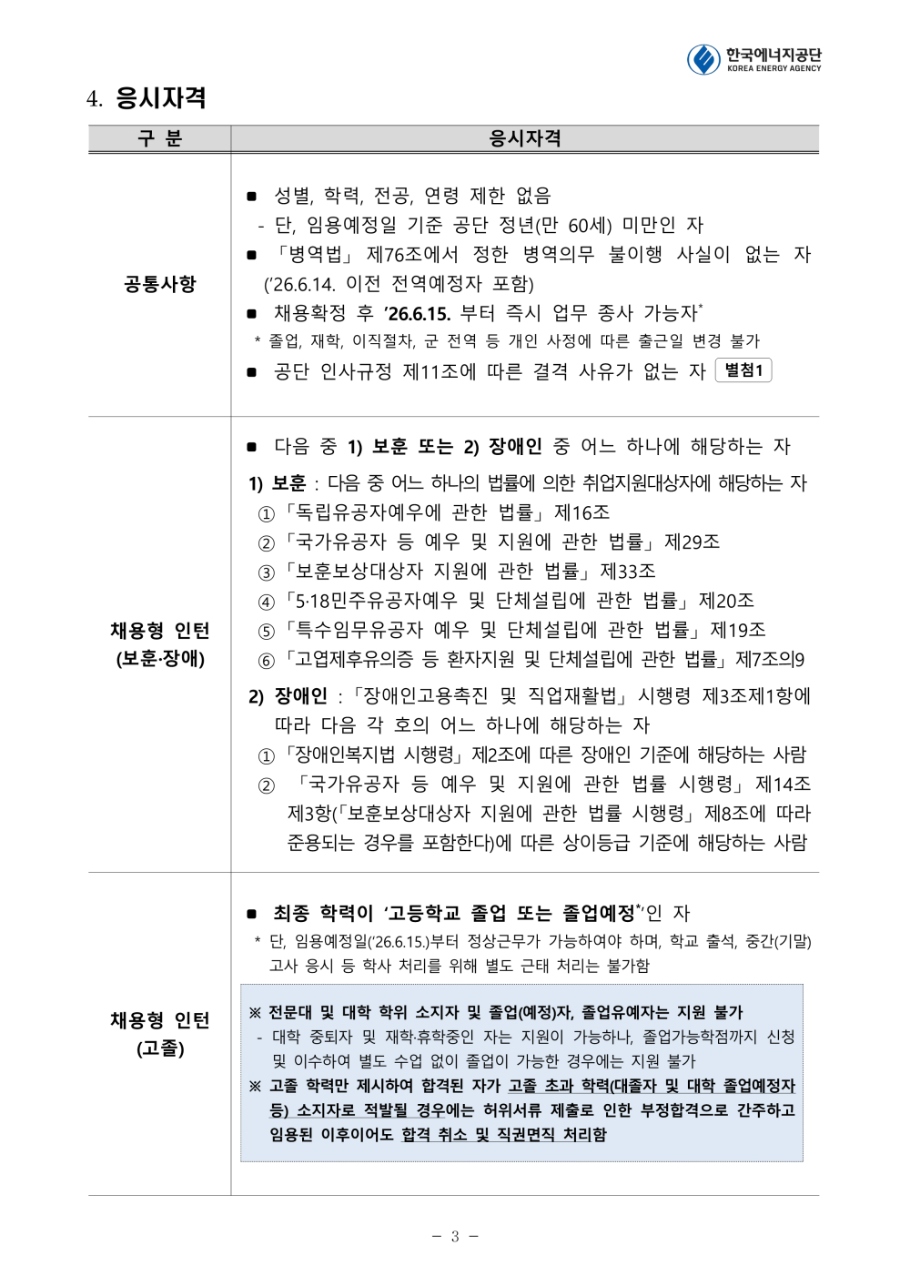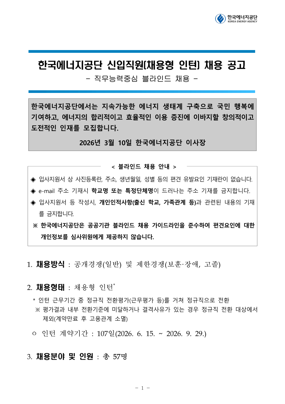 [한국에너지공단] 2026년도 신입직원(채용형 인턴) 채용 공고(~3/25)