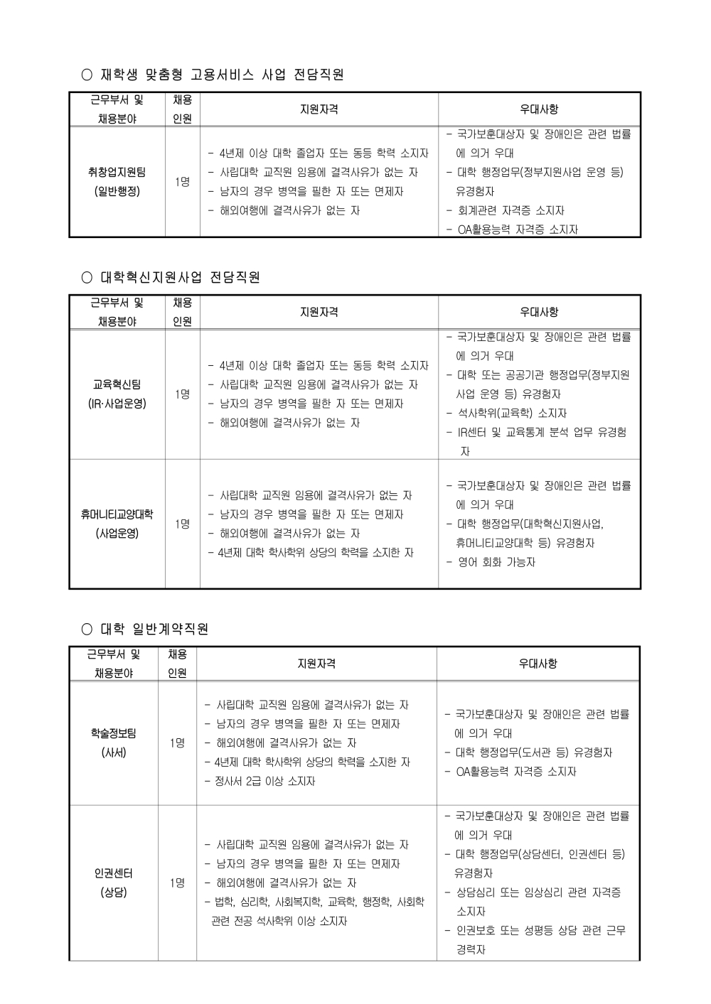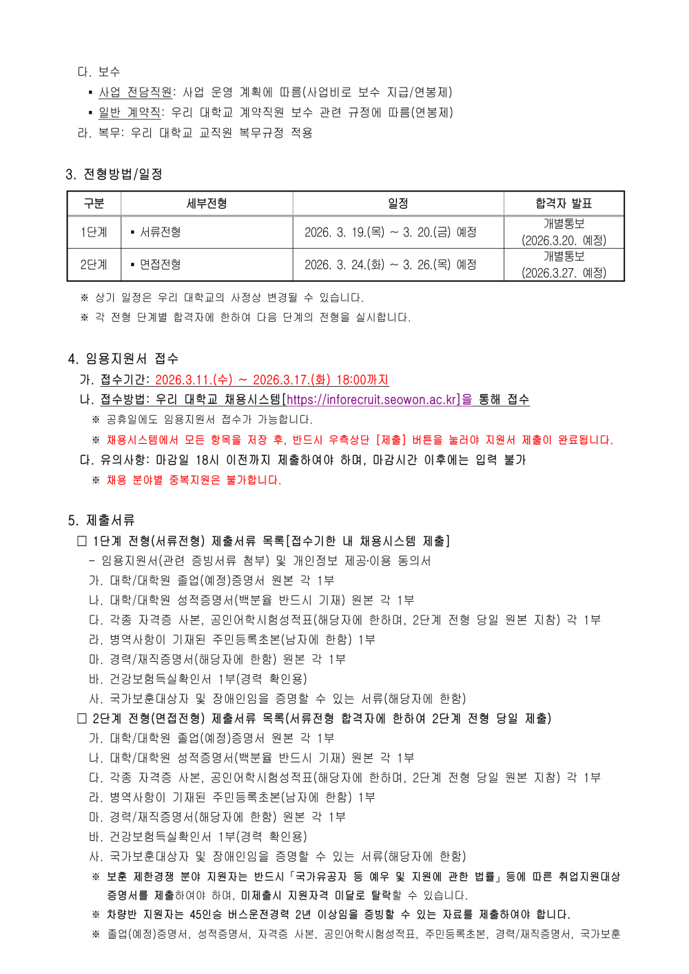[서원대학교] 직원 신규채용 공고(~3/17)