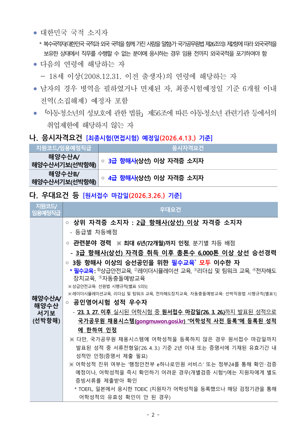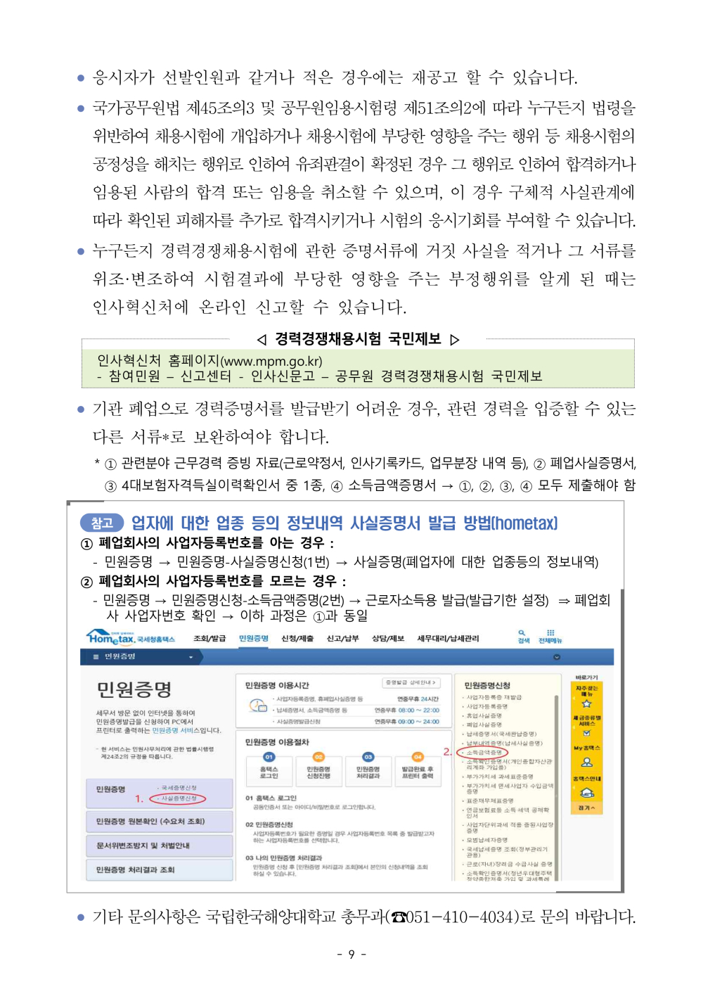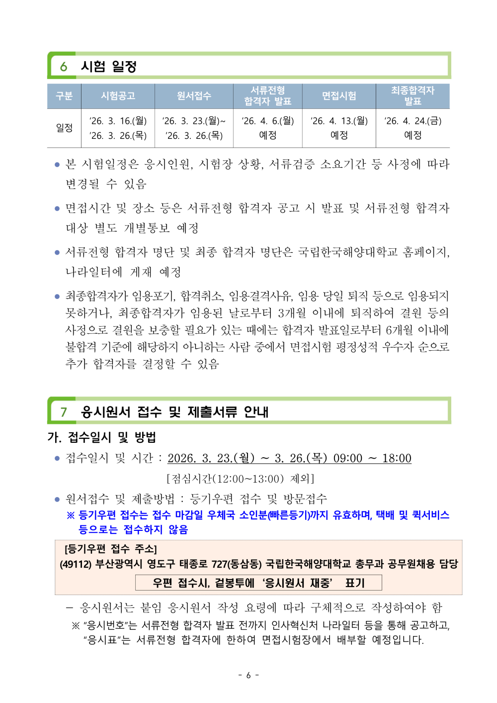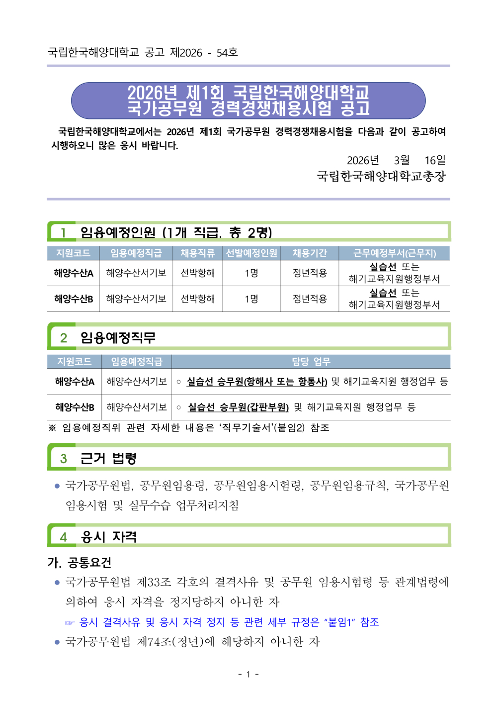 [국립한국해양대학교] 2026년 제1회 국가공무원 경력경쟁채용시험 공고