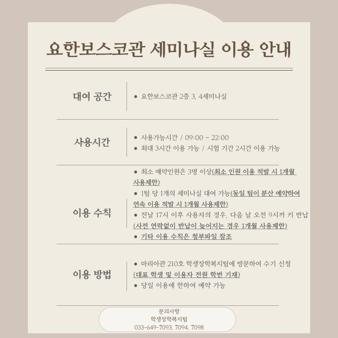 학생장학복지팀 033-649-7093, 7094, 7098